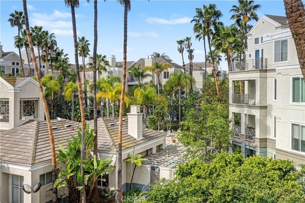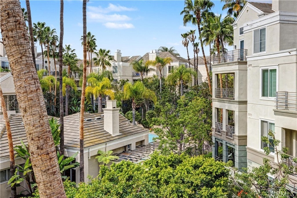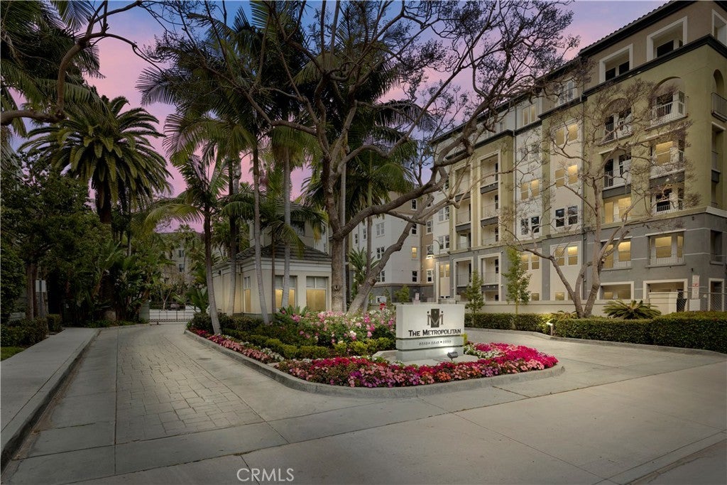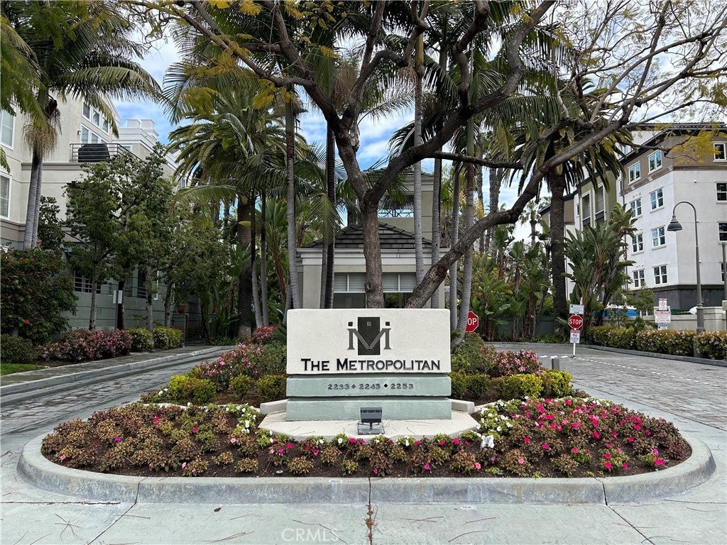 Situated within the guard-gated Metropolitan Community of Irvine, this rare third-level, top-floor penthouse residence with no unit above offers a low-maintenance lifestyle with resort-style amenities and gated security. The elevated location allows for vaulted ceilings and abundant natural light throughout. Community features include a clubhouse, fitness center, pool, and spa, while HOA dues cover water, trash, and gas for added convenience. The light-filled, open floor plan features two bedrooms and two bathrooms, enhanced by fresh interior paint and updated fixtures throughout. A flexible office or den near the entry provides versatile use and may serve as a guest bedroom or dining area. The kitchen opens to the living area and includes stainless steel appliances and an in-unit laundry closet with stackable washer and dryer. A private balcony extends the living space and offers peaceful outdoor enjoyment with views of palm trees, blue skies, city lights, and a peek-a-boo pool view. The primary suite features vaulted ceilings, generous closet space, and an en suite bathroom with dual-sink vanity, soaking tub, and separate shower with updated faucets and fixtures. The secondary bedroom is well-sized and located near the hall bathroom, offering comfort and privacy for guests or additional occupants. Additional highlights include two assigned subterranean parking spaces. Conveniently located near major freeways, John Wayne Airport, South Coast Plaza, Fashion Island, Newport Beach, and Irvine’s premier dining, shopping, and employment centers, this penthouse is a rare lease opportunity within the Metropolitan gated community of Irvine.