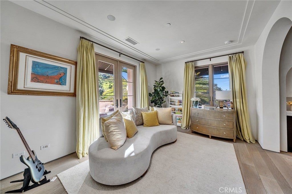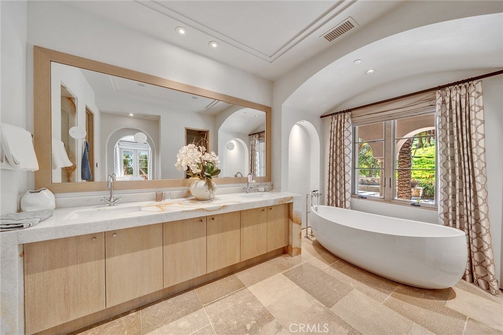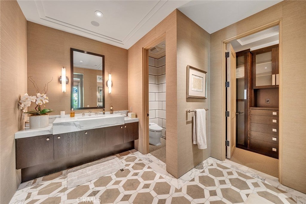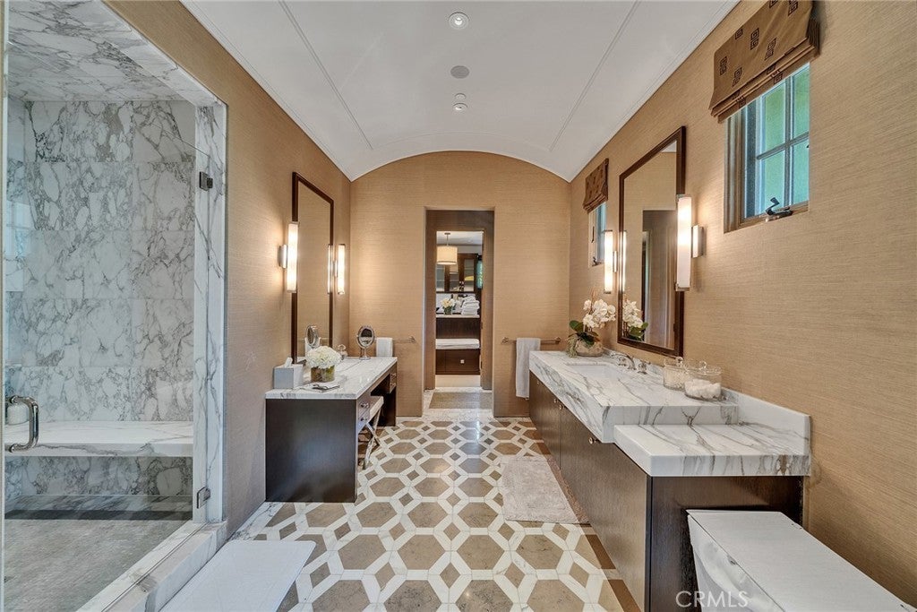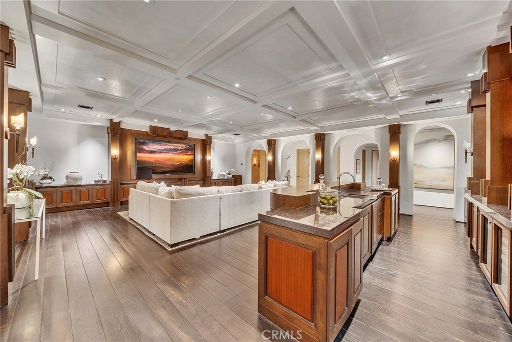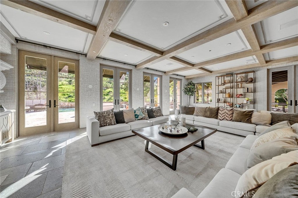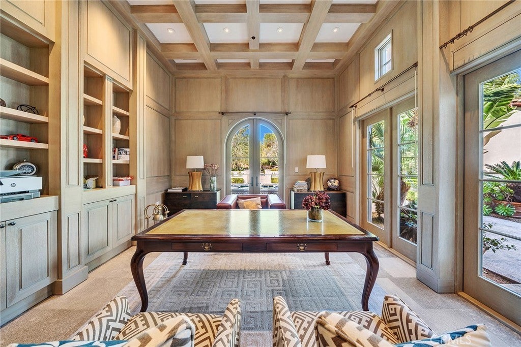 Casa California — the distinguished 2009 Philharmonic House of Design — is a remarkable luxury residence located in Shady Canyon. Designed by architect John D. Henderson, AIA (Spectrum Architecture), built by Finton Construction, and featuring interiors curated by 16 prominent Southern California designers under the direction of James Magni, this home reflects the elegance and sophistication of California’s golden era. Inspired by the timeless Spanish Colonial and Mediterranean styles of Wallace Neff and George Washington Smith, the residence blends classic architecture with contemporary indoor-outdoor living. Encompassing over 10,600 square feet of living space, the home offers 5 bedrooms and 9 bathrooms, along with a fully finished lower level featuring a high-quality home theater, lounge, bar, sauna, gym, and massage terrace. This high-quality, move-in-ready residence showcases exceptional craftsmanship and high-end upgrades throughout. The expansive grounds feature an approximately 2,000-square-foot resort-style pool area with spa and cabana, providing outstanding outdoor living and entertaining space. The property is equipped with an added solar system designed to enhance energy efficiency and may provide significant utility cost savings.