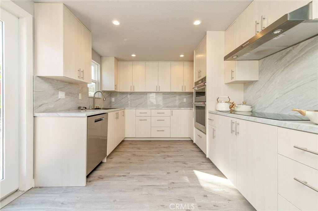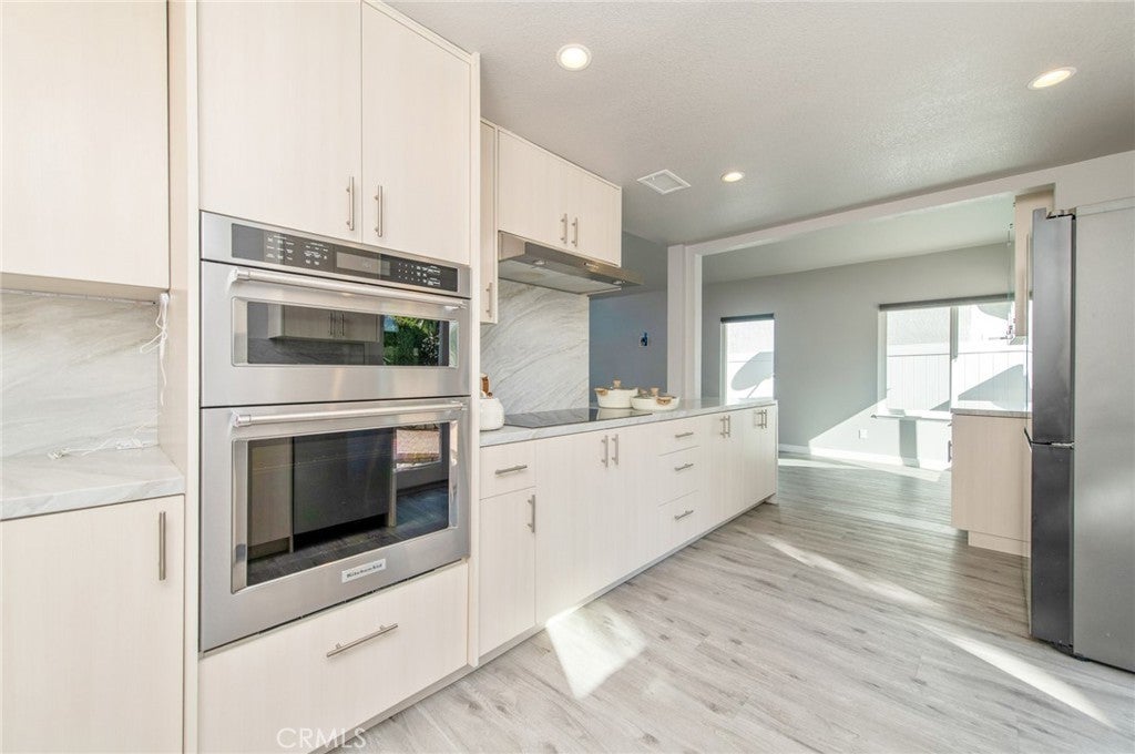 Stunning fully renovated 4-bedroom, 3-bath single-family home in the sought-after Meadowwood community of Lake Forest. Bright and airy, this south -facing home offers a highly desirable layout with one bedroom and one full bath on the main level. Brand-new designer kitchen, featuring elegant quartz countertops, custom soft-close cabinetry, and premium KitchenAid appliances, including a smart refrigerator, induction cooktop, and built-in microwave/oven combo—perfect for both everyday living and entertaining. The first floor is enhanced by new luxury vinyl plank flooring, fresh interior paint, and all-new LED recessed lighting throughout. Upstairs, the spacious primary suite offers a newly remodeled spa-style shower, while two additional bedrooms share a beautifully updated bathroom. All bathrooms are fully renovated with modern finishes and smart toilets. Extensive upgrades aslo include a tankless water heater, updated HVAC system with new air ducts, salt-free whole-house water softening system, and a new ultra-quiet garage opener. Washer, dryer, and an extra garage refrigerator are included. Step in the professionally landscaped backyard is ideal for relaxing and entertaining, complete with a built-in BBQ, mature trees, and new fencing. Meadow Wood community amenities include a playground, picnic area, and sport court, all conveniently located near shopping, dining, parks, and major freeways. A rare opportunity to own a truly move-in-ready, luxury-upgraded home in Lake Forest.