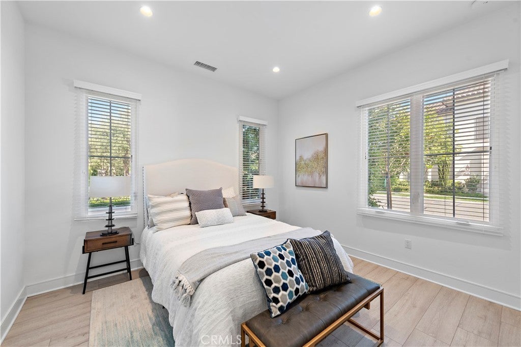WELCOME to this 4Beds 3Full Baths luxury Single family detached home located in the premium gated community Barcelona at Irvine Spectrum. This stunning Plan 2 model situated in a 2,466 SF corner lot, beautiful open floor plan with downstairs spacious one bedroom one full bath. Natural sunlight throughout the house all day. Open floor plan with living room connected to the kitchen. Stainless steel appliances, highly upgraded island and kitchen backslash open to the dinning area with large walk-in pantry. Recessed LED lights throughout the house. Upstairs, 2 large secondary bedrooms sharing one spacious bathroom with dual sinks. Large Master bedroom with walk-in closet and luxurious bathroom with soaking tub. Whole house air circulation system offering energy efficiency in summer. All Vinyl Flooring throughout. 24 hr gated. Short walking distances to Los Olivos shopping center and Irvine Spectrum. Minutes from I-405 & I-133 & I-5. Close to Laguna Beach. A must see home!