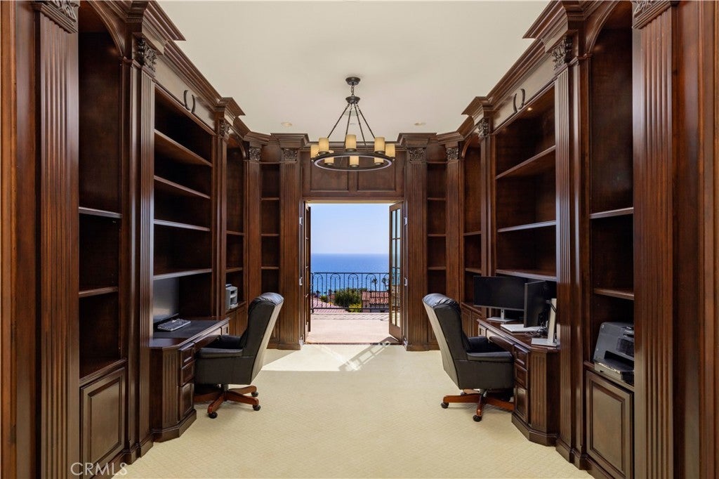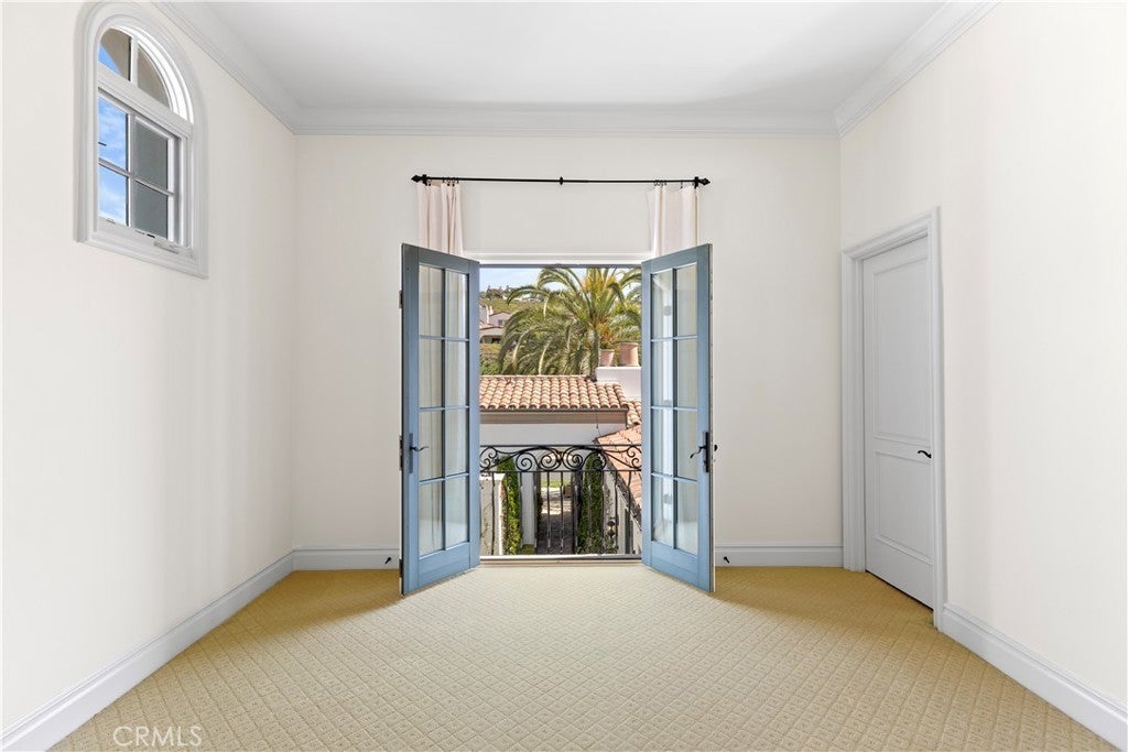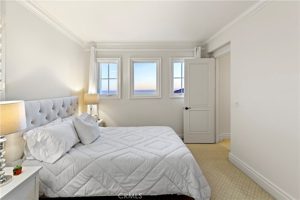Indulge in luxurious coastal living with this stunning 4800 sq. ft. property in the coveted guard-gated Crystal Cove community. Enjoy sweeping 180 degrees ocean views stretching from Palos Verdes to Catalina Island to Laguna Beach, complemented by high vaulted ceilings throughout the house and an enchanting courtyard. Inside find a large open kitchen featuring Sub Zero and Viking Professional appliances with dual ovens and dual dishwashers. The large primary suite offers a sumptuous bathroom, sitting area, and unparalleled ocean views, while another en-suite bedroom commands an exquisite courtyard view. A separate guest casita with a full bathroom provides additional accommodations. All three downstairs bedrooms have separate entries, making for a versatile living space. Upstairs, there are two additional bedrooms, a loft and a large office with custom built cabinets, cathedral ceilings, and expansive ocean views make the ultimate work-from-home oasis. Step outside to the large balcony and soak in the tranquil ambiance while working or relaxing in comfort. Experience resort-style living with access to world-class amenities, including a clubhouse with a pool, spa, gym, tennis courts, basketball court, parks, and miles of walking and biking trails. With refreshing sea breezes and forever ocean views, this property epitomizes luxury living in Newport Coast's most coveted community.