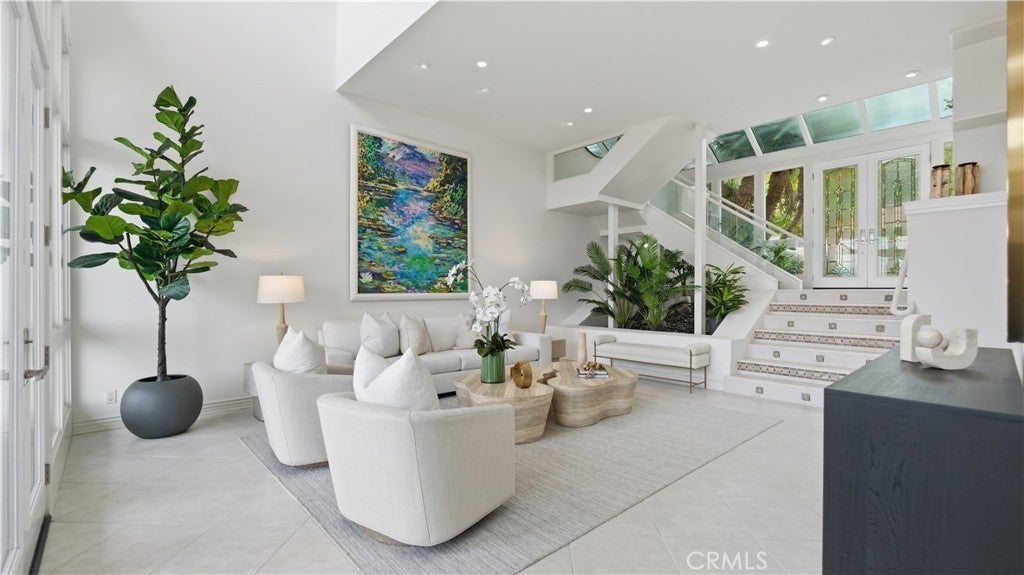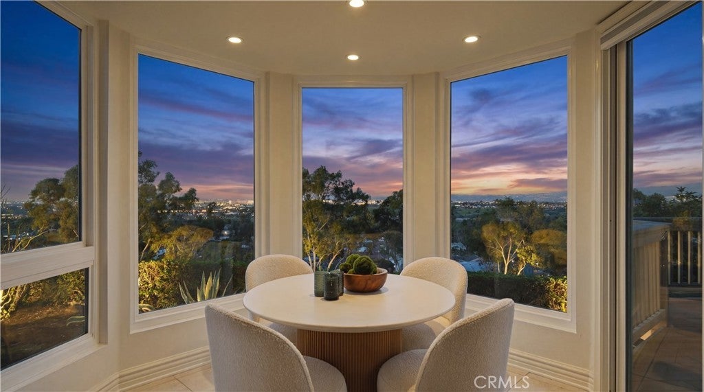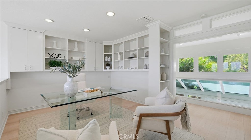 Located within the gated enclave of Harbor Ridge, this 3 bedroom + office, 3 bath residence enjoys elevated city and ocean views, and a thoughtfully designed floor plan that balances privacy and functionality throughout the home. A gated entry leads to a landscaped courtyard, creating a quiet and welcoming arrival. Inside, the interiors are light filled and refreshed, featuring skylights, recessed lighting, and clean, neutral finishes. The main living areas are highlighted by high ceilings and seamless access to multiple outdoor patios, enhancing everyday living and entertaining. The kitchen is designed for both everyday living and entertaining, featuring a center island, black onyx granite countertops, high end appliances, generous storage, and a casual dining area overlooking the garden. A full bathroom is conveniently located on the main level, providing ease of access for guests and daily use. The upstairs office offers built in workspace and a quiet setting, making it well suited for working from home. The primary suite features two walk in closets, including a spacious cedar lined dressing closet, and a well appointed bathroom with dual vanities, a soaking tub, and a separate shower. The suite also opens to a private balcony, offering open views and a peaceful extension of the living space. Residents of Harbor Ridge Estates enjoy access to community pools, spas, tennis courts, and walking trails, all conveniently located near Fashion Island, Pelican Hill, Newport Beach’s coastline, and award-winning schools.