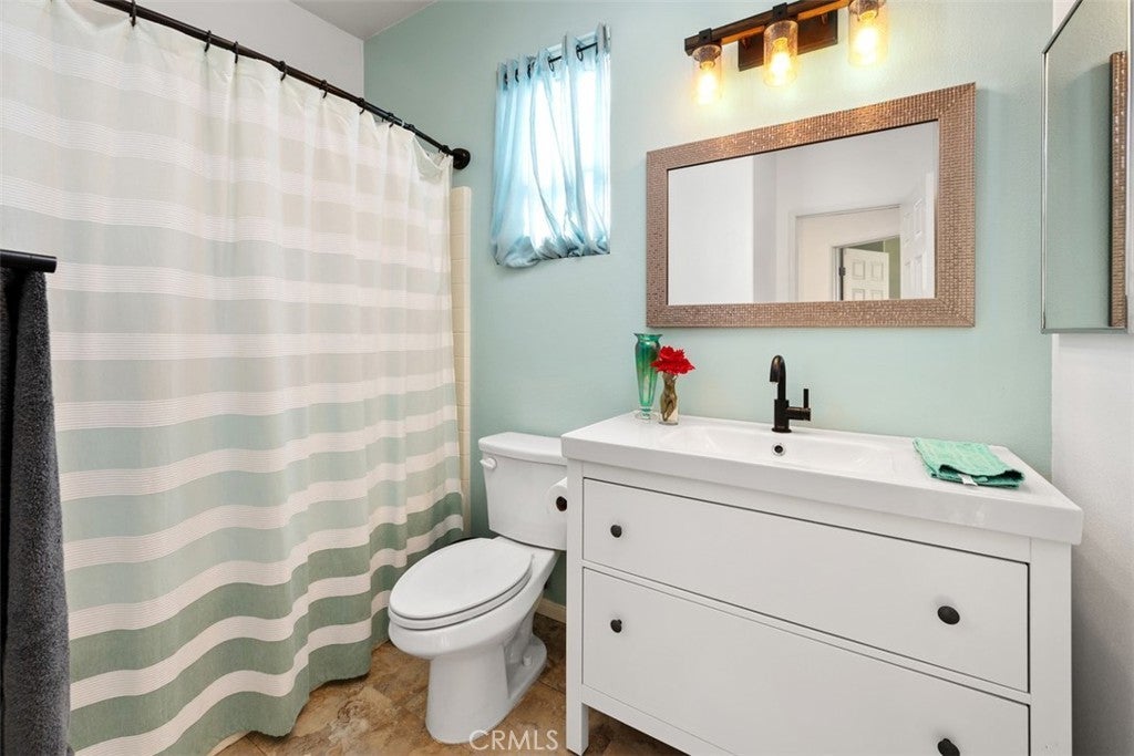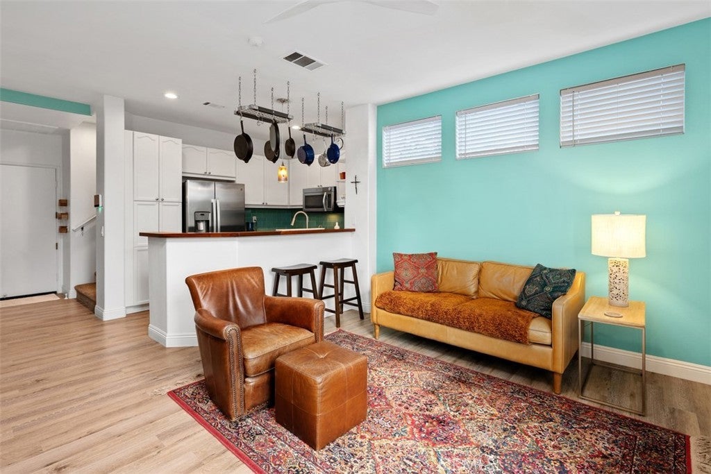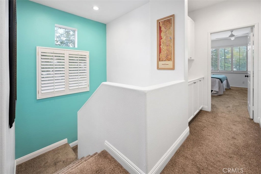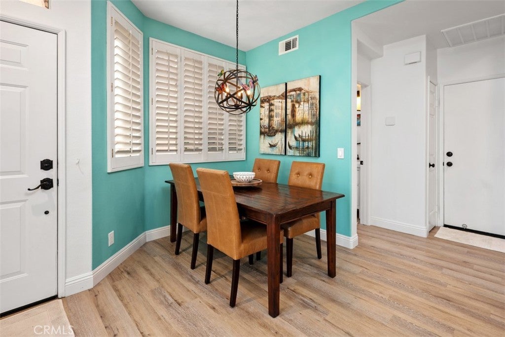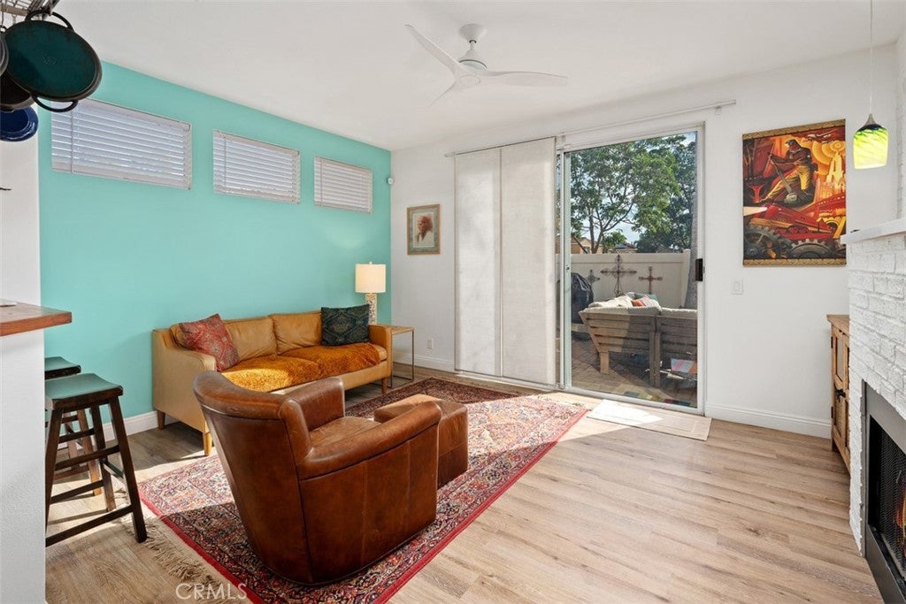Nestled on a premier greenbelt corner lot within the highly desirable Flores Los Alisos community, this beautifully detached 3-bedroom, 2.5-bath residence offers a rare blend of privacy, warmth, and refined design. From the moment you enter, natural light fills the home, creating an atmosphere that feels both open and intimate. The living space is anchored by a charming white brick-style fireplace—an inviting focal point for quiet evenings or gathering with friends and family. A sunlit stair landing framed with plantation shutters adds architectural character and soft filtered light to the upper level. At the heart of the home, the remodeled kitchen is as stylish as it is functional. Turquoise glass tile adds a subtle pop of personality, while stainless steel appliances, designer fixtures, and a rich wood bar top create a space that feels thoughtfully curated and effortlessly welcoming. Whether hosting dinner parties or enjoying a slow Sunday morning, this kitchen truly lives beautifully. Upstairs, the primary suite feels like a private retreat. The spa-inspired bath has been fully remodeled with striking black-and-white parquet-style flooring, custom dual vanities, premium hardware, and carefully selected finishes that elevate everyday living. All bathrooms throughout the home have been remodeled with the same attention to detail, and fresh interior paint enhances the bright, polished feel from room to room. Step outside and discover a wraparound backyard designed for connection and comfort. Custom pavers, low-maintenance vinyl fencing, and a built-in stainless steel outdoor kitchen with rotisserie set the stage for relaxed evenings under the Southern California sky. With only one adjoining neighbor, the setting feels peaceful and secluded—yet just moments from parks, scenic trails, and local schools. This is more than a home—it’s where mornings begin with sunlight spilling through your windows, evenings are spent entertaining or unwinding in your private backyard oasis, and every day feels effortlessly inspired by the beauty, comfort, and lifestyle that Flores Los Alisos offers.