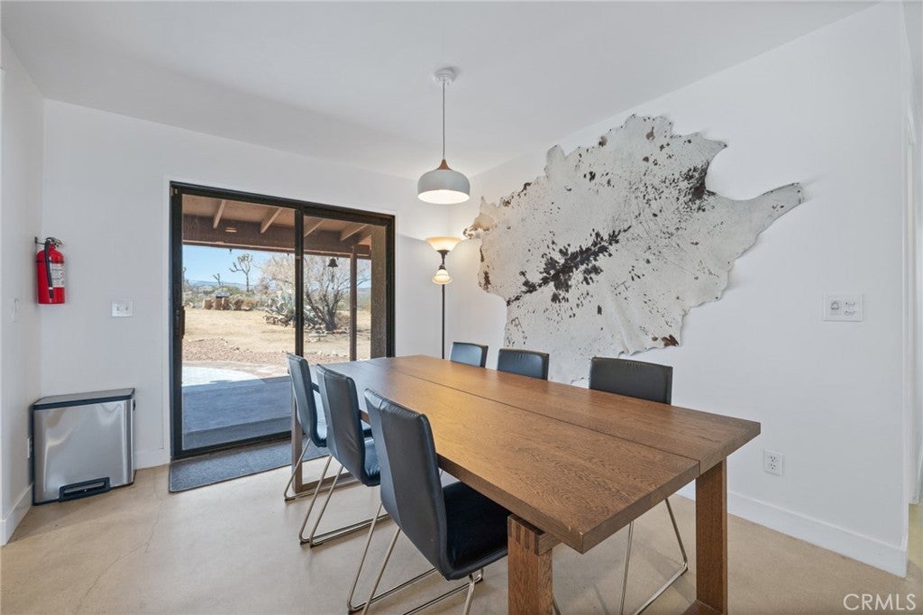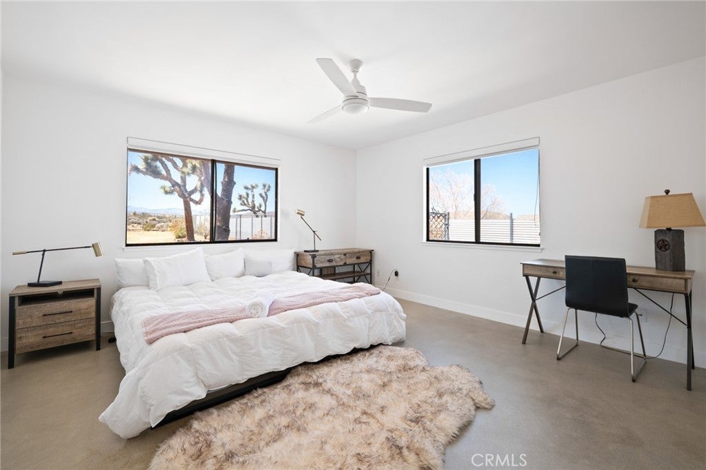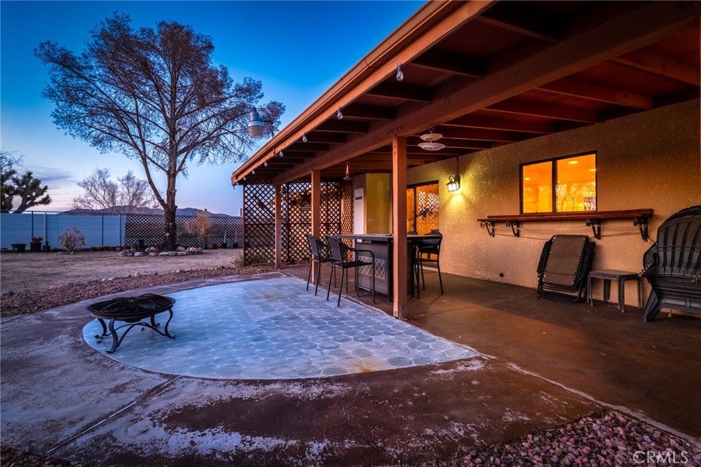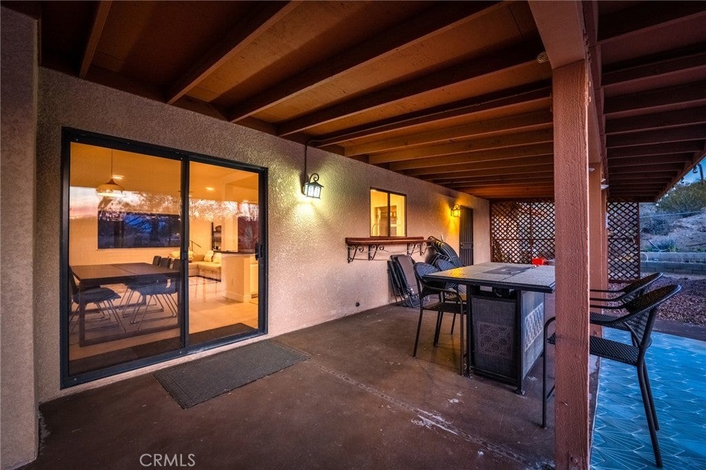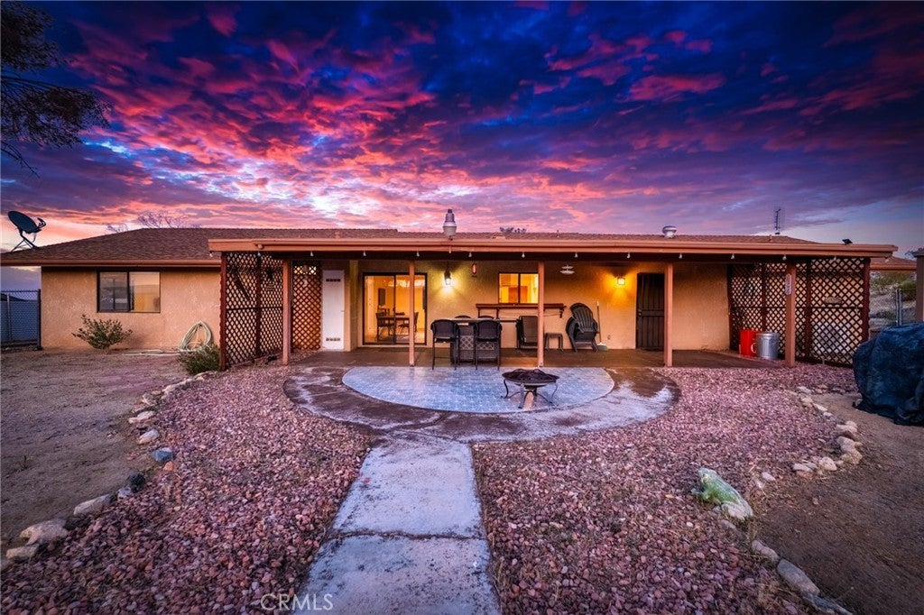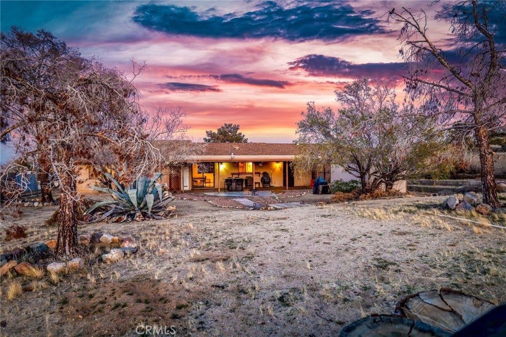 Welcome to the Joshua Tree Homestead! Located on a quiet hillside street in a desirable Joshua Tree neighborhood, this beautifully updated 3-bedroom, 2.5-bath home offers privacy, views, and convenience just minutes from downtown. Renovated in 2021 with new flooring, interior paint, window blinds, and updated countertops, the property has been lightly used and is in move-in-ready condition. The home features an open, light-filled layout, central heating and air, and an oversized attached 2-car garage with a half bath. The large, fully fenced backyard includes a covered patio, fire pit area, and a detached storage shed. Paved road access and driveway add everyday convenience. Offered fully furnished with appliances included. Ideally located near the west entrance of Joshua Tree National Park, perfect for a primary residence, vacation home, or investment property. A rare combination of location, views, upgrades, and turnkey readiness—this is a must-see Joshua Tree gem.