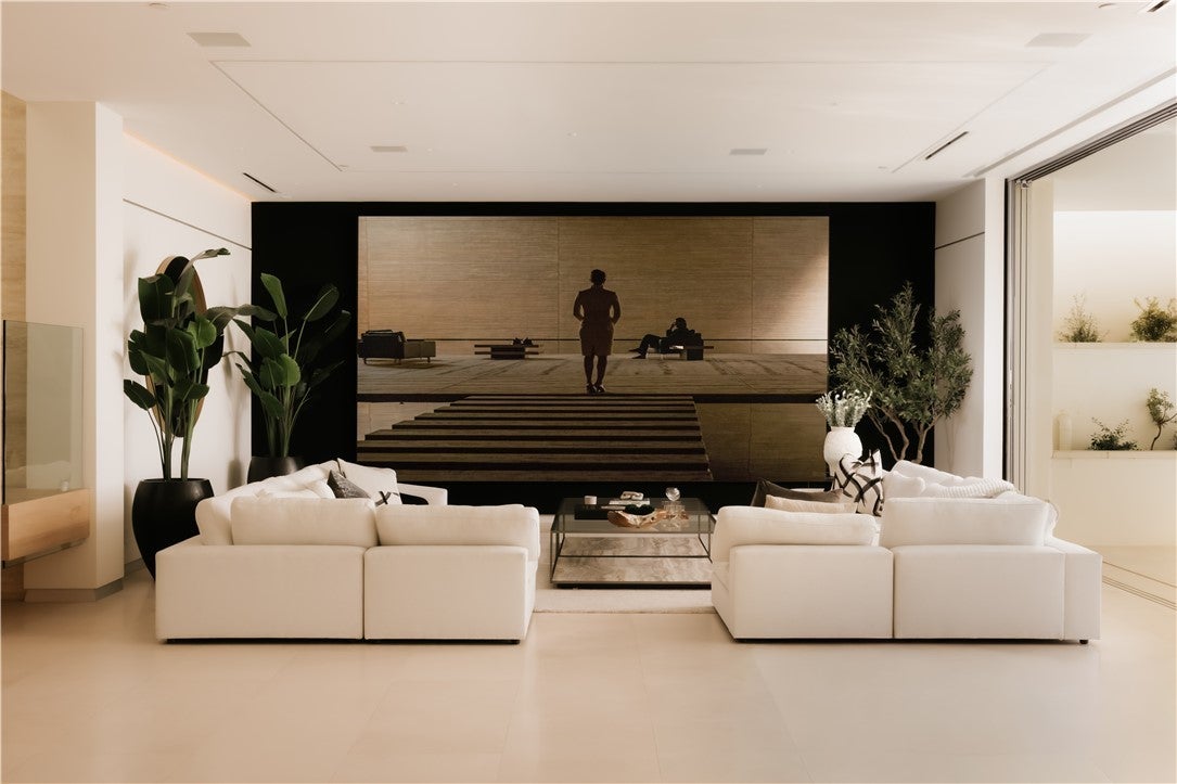 Perched on an exceptionally large lot in the coveted Irvine Terrace enclave of Corona del Mar, 1119 Dolphin Terrace is a striking contemporary estate capturing sweeping views of the ocean, jetty, Balboa Island, and coastline beyond. Completed after a meticulous six-year build, the approximately 10,311-square-foot residence offers 6 bedrooms, including two luxurious primary suites, and 8 baths, all defined by dramatic scale, soaring ceilings, and walls of glass that frame the coastal setting. Designed for elevated entertaining, the home features expansive living areas anchored by a 219-inch media wall, a statement bar, glass wine display, and dual chef-caliber kitchens. Motorized pocket doors create seamless indoor-outdoor flow to a spectacular 65-foot lap pool and resort-inspired grounds overlooking the Pacific. A private wellness retreat with full fitness studio, sauna, steam room, and meditation space delivers a spa-caliber experience at home. Moments from Newport Beach Country Club, Fashion Island, and Balboa Island, this architectural showpiece represents a rare opportunity to own a true legacy property in one of Southern California’s most prestigious communities. Square footage includes the 835-square-foot garage.