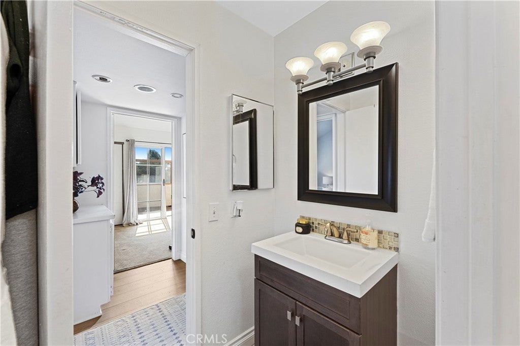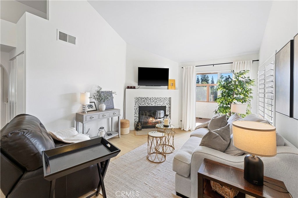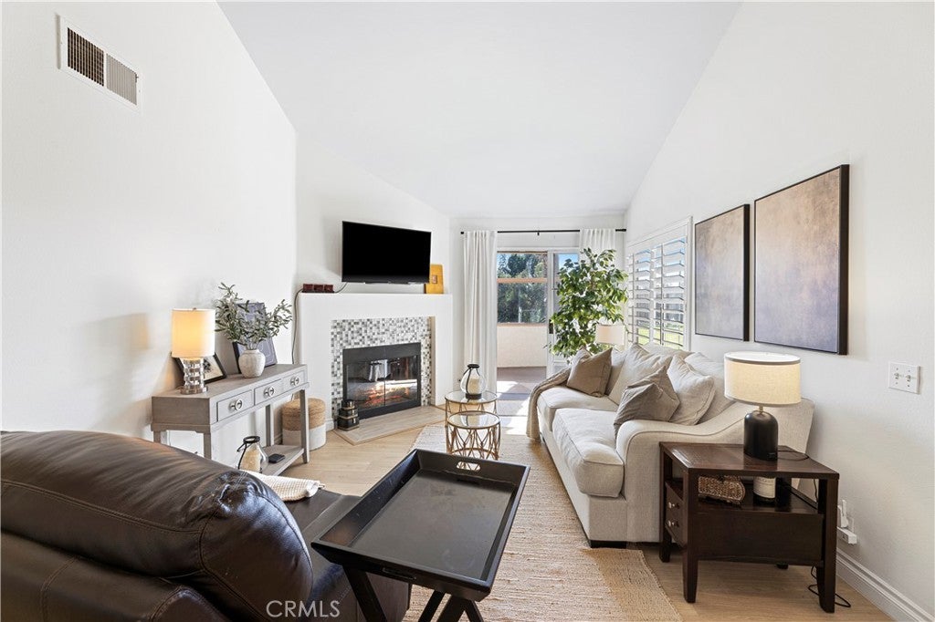 Move-in ready upper-level 2-bedroom condo just 8 miles from the ocean! This upgraded home offers expansive views, new laminate flooring, plantation shutters, a brand new water heater, and a cozy fireplace. The kitchen features vaulted ceilings, granite counters, and a breakfast bar, opening to a dining area with designer lighting. A Jack-and-Jill–style bathroom provides convenient dual access, and the primary bedroom includes a walk-in closet and makeup vanity. Indoor washer/dryer included. Covered carport directly across from the unit. Community amenities include a pool, spa, playground, and a large park with walking trails and an open greenbelt.