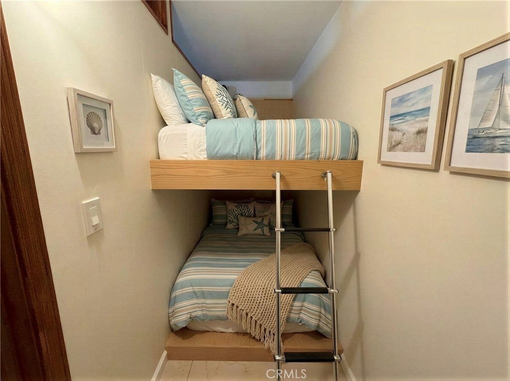 Spacious two-story 2-bedroom, 3-bath unit with a bonus bunk-bed loft, offering approximately 1,400 sq ft of well-designed living space. The bright main level features an open living, dining, and kitchen area with abundant natural light, a peaceful private patio, and a guest half bath. The kitchen includes a refrigerator, brand-new stainless steel LG dishwasher, gas range/oven, granite countertops, and ample cabinet storage. Upstairs offers two generously sized bedrooms, each with its own bathroom, floor-to-ceiling mirrored closets, ceiling fans, and comfort-height toilets. Additional features include porcelain tile and hardwood flooring throughout, wall-mounted AC units in every room, and a versatile loft ideal for guests or flexible living space. Well-maintained, quiet community with on-site laundry featuring Speed Queen commercial machines. Reserved parking and garage options available. Water and trash included; tenant pays gas and electric. Pet-friendly with deposit and monthly pet rent. Ideally located across from Bella Terra Mall and minutes to major shopping, dining, beaches, parks, and easy 405 freeway access. Some photos have been virtually staged for illustration purposes only.