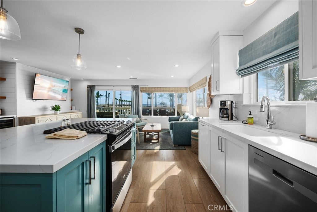 Fabulous remodeled oceanfront getaway, turnkey vacation rental business or BOTH? The choice is yours at 700 E Oceanfront The property presents a fantastic opportunity to own an updated duplex in the heart of the Balboa Peninsula. LOCATION LOCATION LOCATION, this property is near all of the attractions that you and/or your vacation rental guests desire. Steps away from the sand and ocean, the property is located on the boardwalk and walking distance to Balboa Fun Zone, with activities for all and ferry service to Balboa Island as well as Catalina. The corner location affords unparalleled sunlight and those cooling ocean breezes. The lower 1 bed/1 bath unit is newly remodeled and has its own indoor laundry. A large, open living area flows seamlessly into an upgraded kitchen with quartz composite countertops and a breakfast bar. An oversize deck is perfect for enjoying the beach lifestyle and large gatherings. The upstairs unit is well-designed and newly remodeled throughout, including kitchen (w/ island and wine fridge) and entertaining space, as well as 3 generous bedrooms (the Primary has its own kitchenette) and 2 bathrooms. The living/great room features breathtaking views of the ocean and Balboa Pier. The duplex has been professionally managed and meticulously maintained. Notable features include: Air conditioning (new in 2023), new roof, double-paned windows and functional and cosmetic updates throughout. A rare oversize garage can accommodate up to four cars. This oceanfront duplex offers a proven track record and excellent reviews from former guests. Incredible income potential with 2 Short Term Lodging permits in place. Act quickly! With only 1550 Short Term Lodging Permits available in the entire city, having a property with TWO on Oceanfront is truly a rare opportunity.