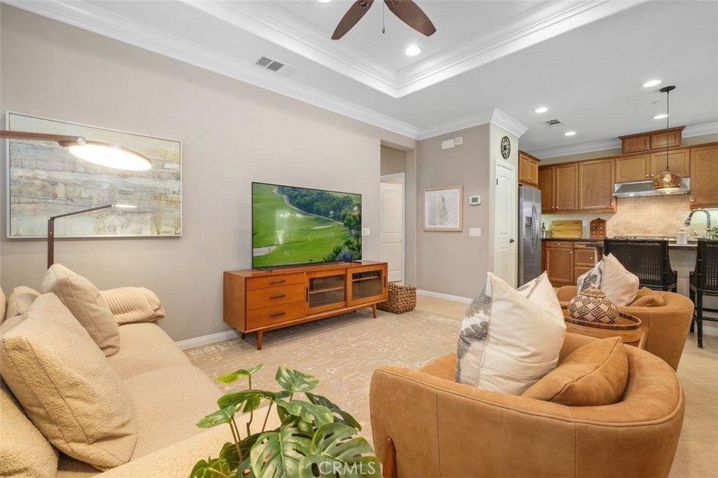 Welcome to the highly sought after Gavilan 55+ gated community of Sendero in Rancho Mission Viejo! This home offers approximately 1,276 square feet of single level living and features two bedrooms and two bathrooms with a seperate laundry room and a 2 car attached garage. The covered patio and lush landscaping create an inviting entryway, leading to a spacious layout filled with abundant natural light. Elegant ceiling fans and warm wood accents throughout the home add to the refined aesthetic, while the tiled backsplash and elegant lighting fixtures in the kitchen contribute to the polished appearance. The primary bedroom is generously sized, with ample space and elegant architectural details. The bathroom offers a spacious layout with extra large walk-in shower, and bright lighting, providing a serene retreat. The outdoor living space allows residents to enjoy the temperate climate and lush surroundings. Step outside and enjoy the resort lifestyle just a short walk away—clubhouses like The Hacienda, The Outlook, and The BBQ Barn offer everything from yoga and bocce to sparkling saltwater pools, spas, and social events. With miles of walking paths, a dog park, and even TV screens for catching the big game, there’s always something to do. And when you’re ready for the ocean breeze, the beach is just five miles away. Designed for both elegance and ease, this is more than a home—it’s a lifestyle.