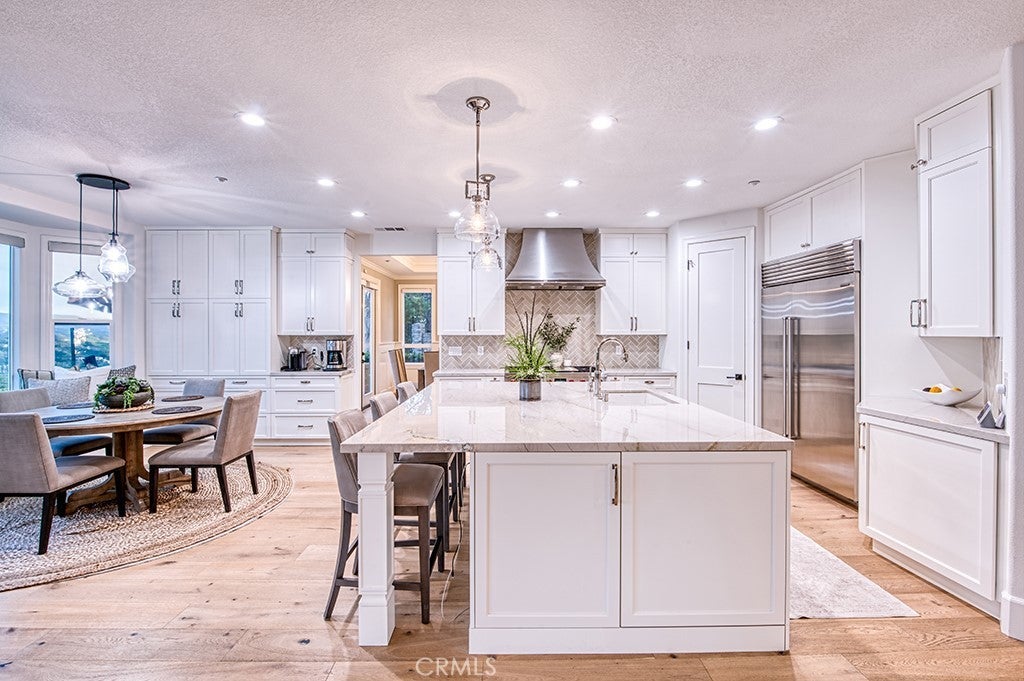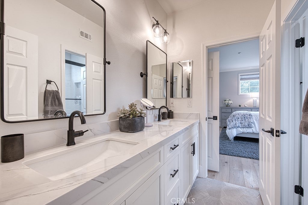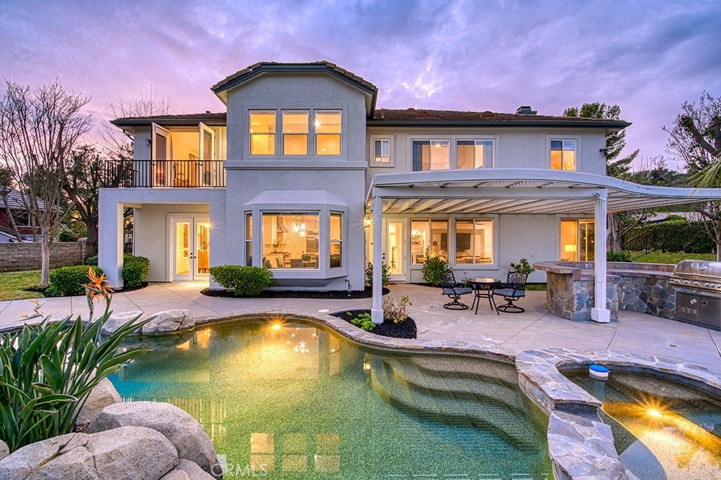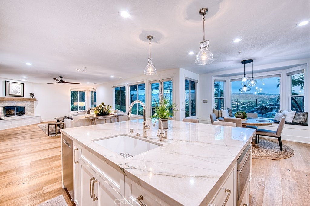 Look no further than this beautifully remodeled estate with extraordinary panoramic views atop the highly desirable street of Panorama in the Pinnacle tract of Coto de Caza! Not only does 6 Panorama offer incredible views that span Saddleback Mountain through Coto de Caza and beyond, this home also presents a completely remodeled interior showcasing high-end design at every turn. From the moment you step inside, you'll find two-story ceilings that showcase a bright and open floor plan. The main level is thoughtfully designed for both everyday living and elevated entertaining, featuring a formal dining room off the kitchen, an inviting living room with fireplace, a private office, and a beautifully remodeled chef’s kitchen equipped with high-end stainless steel appliances, a beverage fridge, and a walk-in pantry. A convenient downstairs bedroom, full bath, laundry room, and additional half bath provide flexibility for guests or multigenerational living. Upstairs, the luxurious primary suite is a true retreat, highlighted by a stunning remodeled spa-inspired bathroom with dual sink vanities, a walk-in closet, a soaking jetted tub and walk-in shower. A spacious bonus room offers endless possibilities for a media lounge, playroom, or home gym. Three additional spacious secondary bedrooms include a Jack-and-Jill layout and a separate full en-suite, offering comfort and privacy for family and guests alike. The expansive backyard boasts a generous lawn, sparkling pool and spa, built-in BBQ center, and sleek glass fencing that perfectly frames the home’s breathtaking panoramic views. Whether hosting gatherings or enjoying quiet sunsets, you'll love what this home has to offer. Experience the best of Coto de Caza, where premier living meets award-winning schools, a world-class Golf & Racquet Club, scenic sports parks, and easy access to hiking, biking, and equestrian trails. No Mello roos=low tax rate. Newer top of the line HVAC Systems and repiped home.