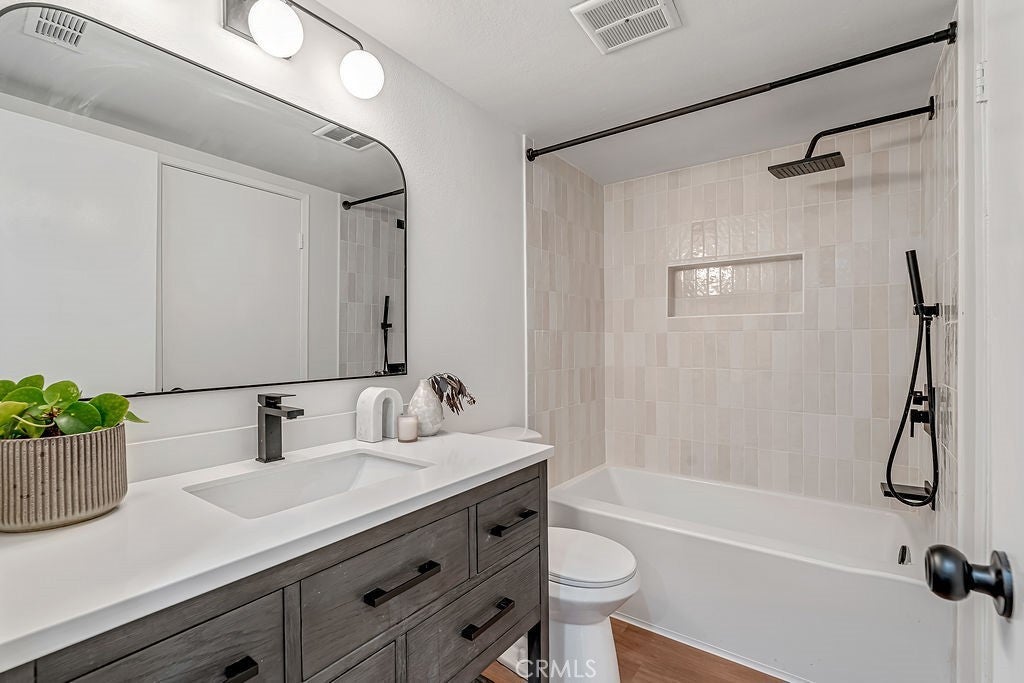 Welcome to 3010 Via Taranto, a turn-key, beautifully updated home in the desirable Villa Frontera community of Anaheim. This 3-bedroom, 1.5-bath residence offers a bright, open layout filled with natural light and high ceilings. Recent upgrades include commercial-grade luxury vinyl plank flooring, new lighting throughout, and fully updated kitchen and bathrooms with modern, high-end finishes. Upstairs features spacious bedrooms, plenty of storage, and a completely remodeled full bathroom with a soaking tub and rain shower head. Enjoy a private backyard ideal for entertaining and indoor-outdoor living. Additional highlights include an attached two-car garage with washer and dryer, ample guest parking, central heating and air, and a brand-new roof.Villa Frontera residents enjoy a large community pool, well-maintained grounds, and convenient access to Anaheim Coves Trail, Rio Vista Park, and nearby playgrounds. Located within the award-winning Placentia-Yorba Linda School District. A move-in-ready opportunity in one of Anaheim’s most welcoming communities.