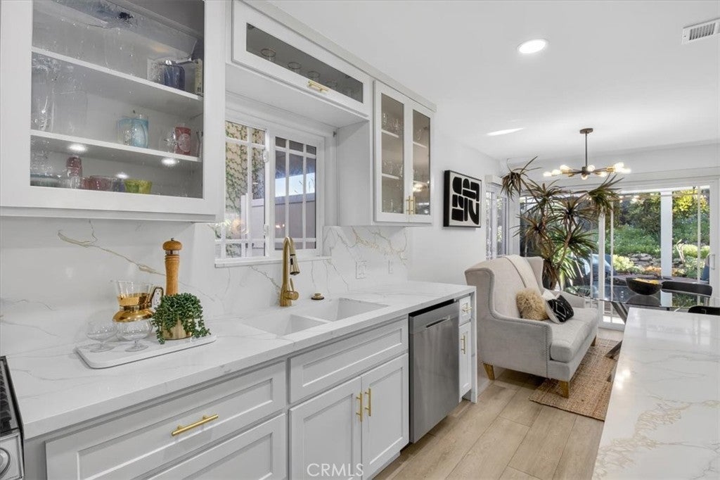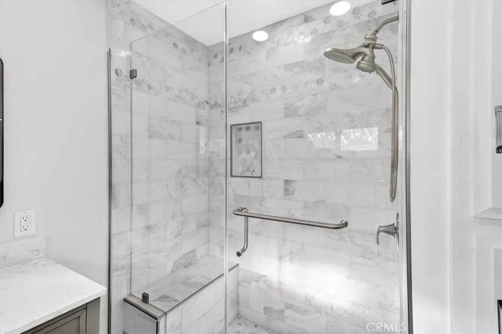 This beautifully remodeled 55+ single-family home at 356 Camino San Clemente offers modern coastal living in a prime location just a short walk from the ocean. Spanning approximately 1,260 sq ft with 2 bedrooms and 2 fully renovated bathrooms, this residence has been thoughtfully updated throughout to blend luxury, functionality, and beachside charm. Step inside to an open floor plan that seamlessly connects the living, dining, and kitchen areas—perfect for entertaining or relaxed everyday living. The floor plan conversion transformed three smaller bedrooms into a spacious master suite featuring a generous walk-in closet and a comfortable guest bedroom, providing privacy and flexibility. The chef’s kitchen shines with custom-made cabinets, a central island, premium quartz countertops, and high-end appliances—ideal for preparing meals while staying connected to the main living space. Both bathrooms have been completely remodeled, including new plumbing, elegant Italian Carrara marble finishes, and modern fixtures for a spa-like feel. The entire home boasts a whole-house rewire, new low-E windows with stylish coverings for energy efficiency and natural light, new flooring throughout, a fresh entrance door, and a new garage door with opener. Additional highlights include a new tankless water heater for endless hot water, a relocated and upgraded central heating unit, fresh concrete in the garage replacing asphalt and atrium, attic access with ample storage, and a charming new lattice patio covering in the backyard—perfect for outdoor relaxation or al fresco dining. Location is everything here in desirable San Clemente. This home sits in a convenient neighborhood with easy access to the city’s renowned beaches, vibrant downtown, and the iconic San Clemente Pier. The ocean is within walking distance, allowing you to enjoy daily strolls along the sand or the scenic San Clemente Beach Trail. Best of all, the private trail to the beach from the backyard provides direct, exclusive access to the shore—ideal for sunrise walks, surfing sessions, or sunset evenings without the hassle of parking or crowds. San Clemente offers a relaxed, Spanish-inspired coastal lifestyle with excellent schools, parks, hiking trails, and a strong sense of community. Whether you’re seeking a primary residence or a beach get-away, this turnkey gem delivers modern upgrades in an unbeatable seaside setting. Don’t miss the opportunity to own a slice of the California dream!