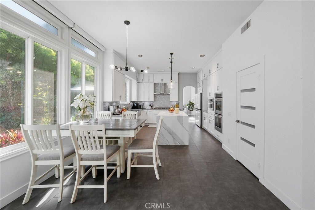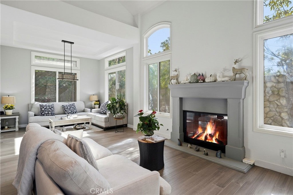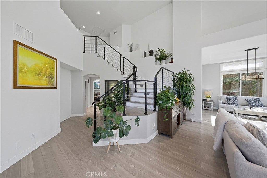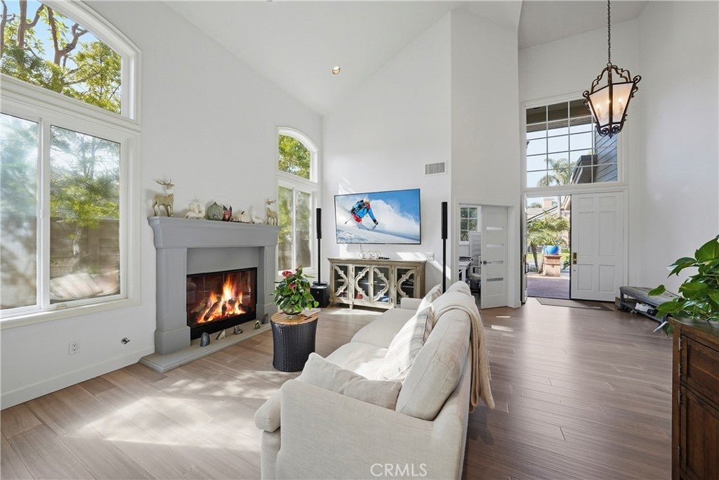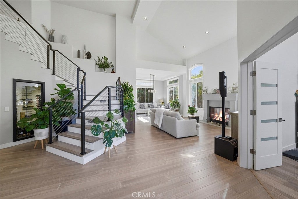 Welcome to the prestigious Edwards Hill Community, where this beautifully updated 4-bedroom, 3.5-bath residence offers an exceptional blend of elegance and comfort. A double-door entry opens to a grand foyer with soaring ceilings, setting the tone for the light-filled living room with fireplace, seamlessly connected to the formal dining room. Hardwood floors and recessed lighting flow throughout the home, enhancing its warm, modern appeal. Beyond the dining room, the gourmet kitchen features KitchenAid stainless steel appliances, a generous quartz island, and abundant cabinetry. The kitchen opens to an inviting family room complete with a wet bar, custom black entertainment center with cabinetry and shelving, wine cooler, and a decorative tile fireplace. Expansive windows flood the space with natural light, creating an ideal environment for both everyday living and entertaining. Step outside to a serene backyard oasis showcasing a built-in barbecue island, brick fire pit with seating, lush landscaping, and two open patios—perfect for hosting gatherings or enjoying moments of quiet relaxation. A stunning staircase with an inviting wine cellar beneath and modern cable railings ascends from the foyer to the second level, where the luxurious primary suite awaits. This exquisite retreat features high ceilings, a dual fireplace, and a spa-inspired bath with soaking tub, separate shower, private water closet, and an expansive walk-in closet plus an additional closet. The upper level also includes a Jack-and-Jill bedroom and bath, along with a third bedroom and adjacent full bath. Additional highlights include an oversized three-car garage with epoxy flooring and built-in storage, water softener, tankless water heater, water filtration system, and extensive garage storage. Ideally located near the beach and pier, equestrian and hiking trails, dining, shopping, and entertainment, and within close proximity to Huntington Beach High School and Seacliff Elementary, this home truly offers the best of coastal living.