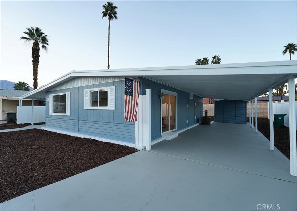Step into this sun-filled 2 bedroom, 2 bath retreat where modern meets comfort and charm. This unique home is located inside of the Date Palm Country Club that shares an elegant, well-maintained golf course open to Date Palm Country Club residents and to the public. This quiet and peaceful community is curated for our senior residents and is 55+ only. Although only one person needs to be 55+ and everyone over 18+. This home has been lightly renovated. Improvements include new vinyl, waterproof flooring. New kitchen cabinets, new cabinet hardware, new kitchen lighting fixtures, new kitchen sink, new bathroom light fixture. Both interior and exterior have been freshly painted. Along with freshly painted driveways. New exterior lighting as well. This 960 sqft home comes with a pleasantly large 19 L X 57 W open, clean backyard that is ready to be curated exactly to your liking. This home sits adjacent to the street so there is no neighbors behind this home, only to the sides. Unit comes with washer and dryer hookups. Date Palm Country Club is surrounded by lots of entertainment such as 2 different casinos, golf courses, endless amounts of restaurants and surrounded by the beautiful mountain views of the California desert.