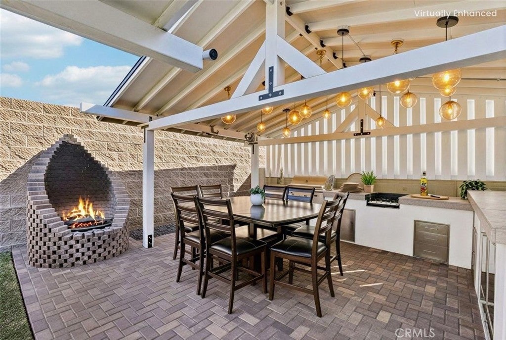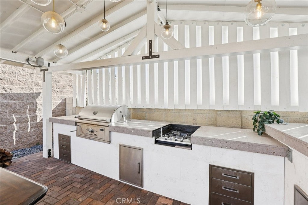 A stunning 1 story home nestled in the charming city of Anaheim, CA. Boasting an inviting façade and exceptional curb appeal, this 4 bedroom, 2.5 bathroom home is a perfect blend of comfort and for anyone that loves to entertain or live outside and enjoy the California outdoor living! Step inside to discover a light-filled interior, where high vaulted ceilings adorned with skylights set the stage for an airy and open ambiance. The living room, featuring a cozy fireplace, seamlessly flows into the dining area and kitchen, creating an ideal space for entertaining and family gatherings. The kitchen is a chef's dream, equipped with stainless steel appliances, an abundance of cabinets, and ample counter space. Sliding doors from the dining room lead to a backyard oasis that is sure to impress. The covered patio is an entertainer's delight, overlooking the pristine saltwater pool with its enchanting waterfall and relaxing Baja shelf. Beyond the pool lies an oversized, custom Gazebo Room/Outdoor Kitchen, complete with double refrigerators, stove-top cooking, a built-in barbecue, and plentiful counter space for hosting unforgettable parties. The home's backyard is further enhanced by a several citrus & fruit trees. Each bedroom offers a tranquil retreat, complete with ceiling fans and solid wood doors. The hallway bathroom has been updated beautifully. The Primary Bedroom has its own en suite bathroom that also has been updated. Not to be overlooked, this property features a newer AC/furnace and ducting system, updated within the last five years. Other recent upgrades like outdoor pavers and the covered kitchen gazebo. With its two-car attached garage, additional oversized shed, and proximity to shopping, parks, dining, schools, and freeways, 502 Mancos is more than just a home—it's a lifestyle waiting to be embraced. Don't miss the opportunity to make this beautifully maintained residence your own.