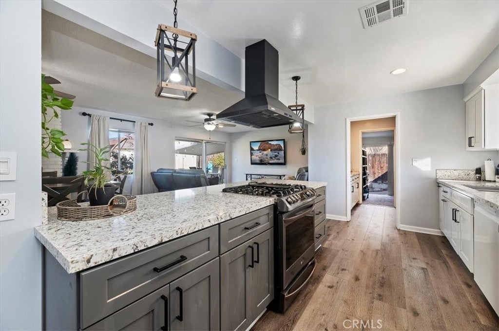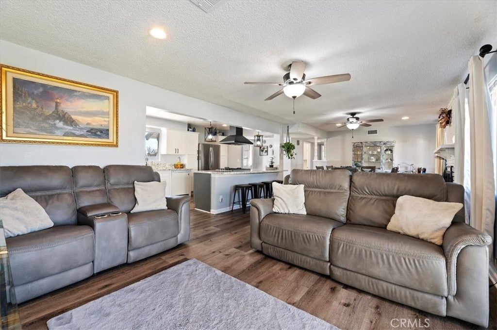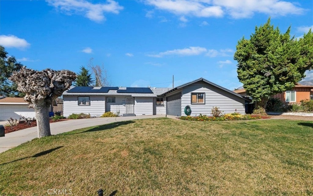 Tucked away on a quiet cul-de-sac in one of Upper Yucaipa’s most desirable neighborhoods, this beautifully updated single-story home blends comfort, efficiency, and lifestyle. Step inside to an open-concept layout designed for modern living, where the remodeled kitchen serves as the heart of the home. Featuring a generous center island, sleek quartz countertops, and a seamless flow into the living and dining areas, this space is perfect for both everyday living and entertaining. Recent upgrades enhance both style and function, including wood plank flooring, a tastefully updated bathroom, and a tankless water heater for endless hot water and energy efficiency. The PAID-OFF SOLAR SYSTEM offers exceptional long-term savings and peace of mind. A dedicated office filled with natural light provides the ideal work-from-home setup or creative space. The primary bedroom offers extra square footage, creating a flexible nook that works beautifully as a nursery, sitting area, or potential future conversion. Outside, the expansive backyard showcases stunning mountain views and a variety of fruit trees and garden treasures, including cherry, miniature orange, apple, tangerine, blackberries, and grapes. Whether relaxing, gardening, or entertaining, this outdoor space delivers a true sense of retreat. Additional highlights include RV parking and a location that combines tranquility with convenience. A rare blend of upgrades, views, and energy efficiency, this Upper Yucaipa gem is ready to welcome you home.