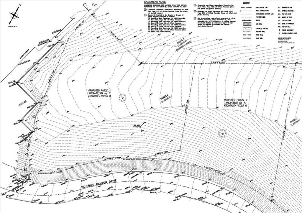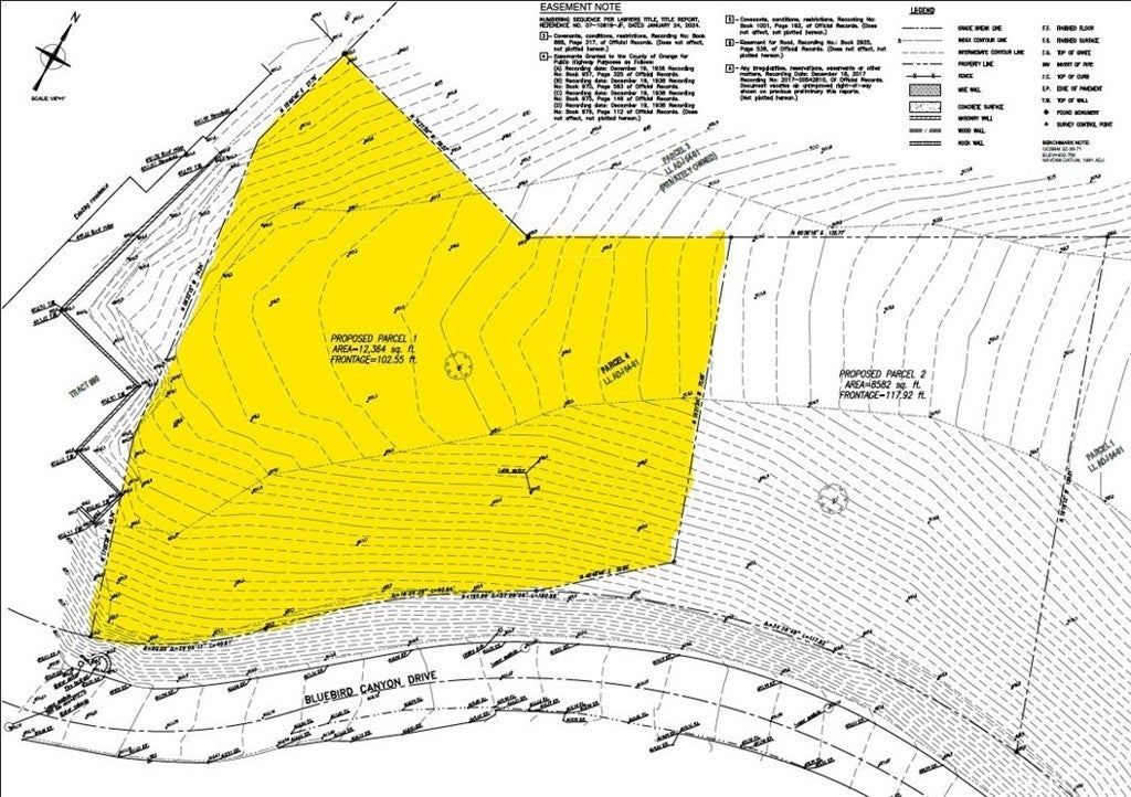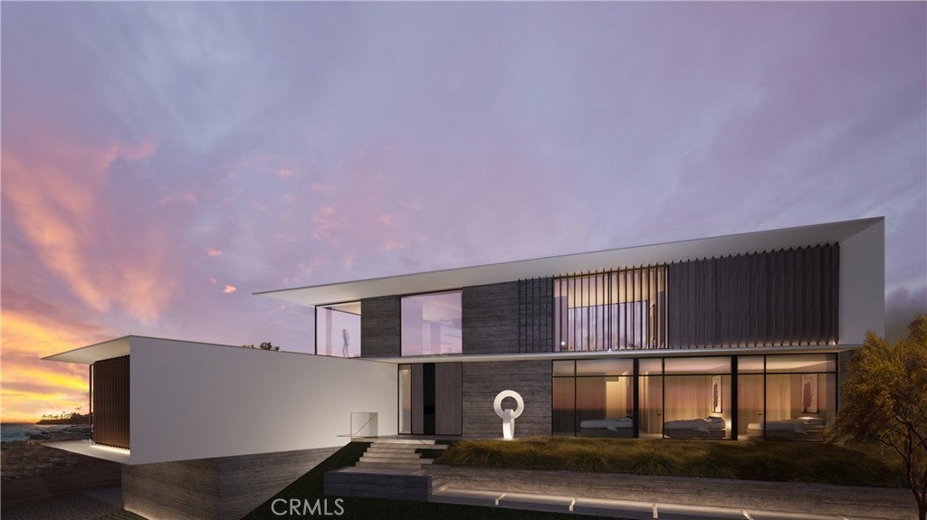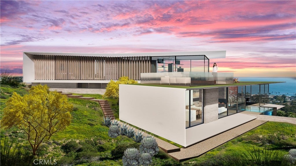 Introducing the largest permit-ready homesite currently available in coveted Bluebird Canyon, Laguna Beach. This exceptional coastal property is a legally established SB9-approved lot split, providing added certainty and protection regarding land use and subdivision rights. The offering includes a Design Review Board–approved set of architectural plans for a striking modern single-family residence, designed by Horst Architects, a renowned local firm known for thoughtful, site-responsive coastal design. The approved plans include approximately 4,393 square feet of living space, a 525-square-foot garage, and an elevated ocean-view deck. The expansive 12,363-square-foot lot captures panoramic views of the Pacific Ocean and Catalina Island from a quiet ridgeline setting between upper Bluebird Canyon and Morningside Drive. This offering is not raw land. It includes the permit-ready building plans and associated process management for a 4-bedroom, 4-1/2 bath residence with an office, expansive indoor-outdoor living areas, an integrated water feature, an in-ground spa, and a carefully considered arrival and circulation experience. The home’s design received the 2025 AIA National New Residential Design Award, underscoring the project's architectural quality and design integrity. Fully approved plans materially reduce time and project risk, allowing a buyer to move directly to permitting and construction rather than navigating years of hearings and redesigns. Final building department clearance is anticipated in Summer 2026. Architectural plans also include an optional accessory dwelling unit (subject to a separate approval and permitting process). The site offers a rare combination of elevation, privacy, low-traffic surroundings, and multiple access routes toward PCH, enhancing both daily livability and emergency egress considerations. Planned features include solar with battery backup, EV charging, heat pump systems, advanced fire-safety design, and modern smart-home infrastructure, subject to the buyer's final specifications. Well-suited for an end-user or design-forward buyer seeking certainty, speed to construction, and architectural excellence in one of Laguna Beach’s most desirable non-HOA hillside settings. A rare opportunity to bring an award-winning architectural vision to life with approvals already secured and a streamlined path to construction.