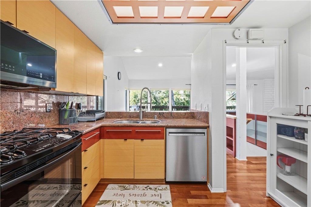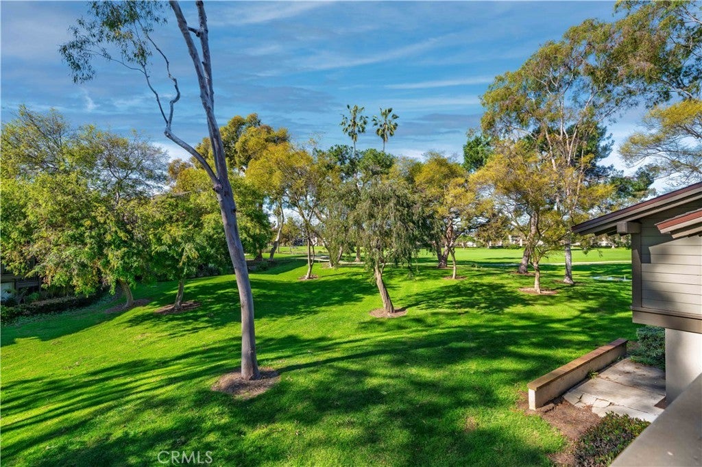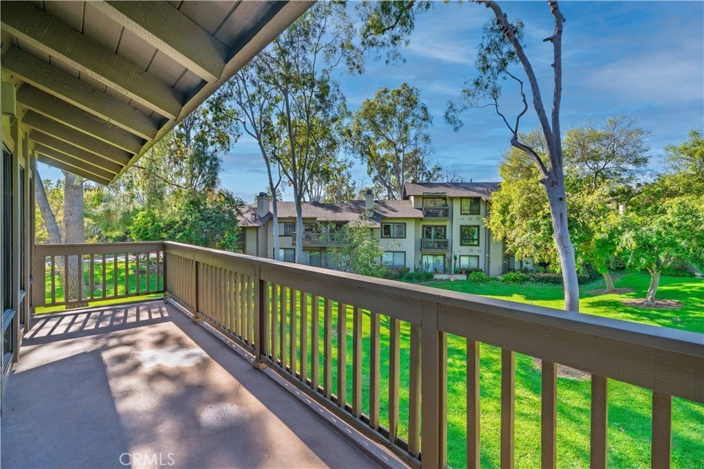 BEAUTIFUL FULLY FURNISHED HOME WITH LONG DRIVEWAY ON CUL-DE-SAC WITH PANORAMIC VIEWS OF LARGE GREENBELT THAT LEADS TO GOLF COURSE! Open floor plan with smooth cathedral ceilings, recessed lighting, and bright with natural light from many large windows. Entry level includes a great room that has an upgraded kitchen, living room with flat screen TV, den, dining room, and powder room. Flooring is wood upstairs, vinyl plank downstairs, and tile in bathrooms. Next to kitchen is an inside laundry room with washer and dryer, and a door to a 1-car carport. Gated front courtyard has a door with direct access to 1-car garage that includes storage shelves. Sliding glass door from dining room opens to outdoor deck where you can sit, relax, and take in the expansive views of the greenery. Remodeled kitchen is open to dining room and has granite counters, stainless-steel kitchen appliances, and cabinets and drawers fully stocked with pots and pans, glasses, plates, utensils and everything you need. Built-in cabinets line both sides of the staircase, and at base of stairs is door to back patio and on either side two bedrooms with private ensuite bathrooms. Large Primary bedroom has walk-in closet, vanity area and privacy door to walk-in shower and toilet, and a slider to back patio. The second bedroom has built-in shelves and cabinets and privacy door to bathroom with shower in tub. A rare opportunity with views of greenery and nature all around! House in acclaimed Irvine School District, including University High. Two community pools and spas. Conveniently located near UCI, William Mason Park, John Wayne Airport, Newport Beach, Fashion Island and walking distance to shops and entertainment. Water, trash, and exterior maintenance included.