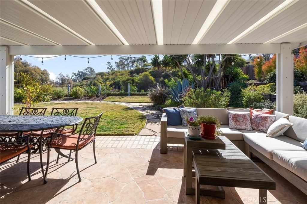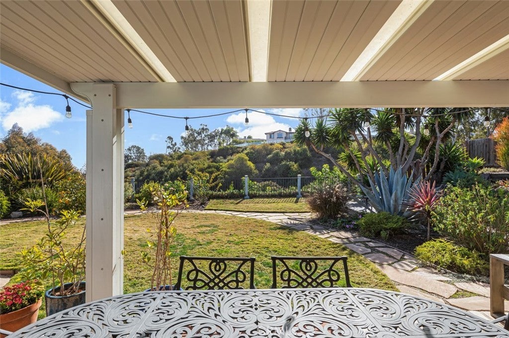 SINGLE LEVEL! ONE MILE TO BEACHES and DANA POINT HARBOR! The warmth of this Open Designer Home is enhanced by its floor plan. A beautiful white marble slab Fireplace, Fully Upgraded Gourmet Kitchen with GE Appliance Package and Private backyard with canyon views which are a rare find in Dana Point. The Primary suite features a spa-like ensuite with granite counters, dual sinks with a separate seat makeup vanity, and stylish fixtures high-end finishes. Two additional bedrooms, share a newer remodeled guest bath. Large outdoor backyard space great for entertaining, dry bar counter, stone patio and pathways, fenced in front and back yard for pets and very private with raised planter/garden beds to plant vegetables, lemon tree and two avocado trees. Easy walking distance to Doheny state park and beach, grocery, parks and restaurants. Open floor plan with lots of natural light with solar tubes, skylights. One level living and NO INTERIOR STEPS! Unfurnished. No Maintenance: weekly lawn/garden care included. There are 13 Solar Panels: for low utilities and kitchen has ample storage, pantry. Garage has lots of custom cabinets for storage, coat closet, laundry and EV hookup. Don't miss this wonderful home!