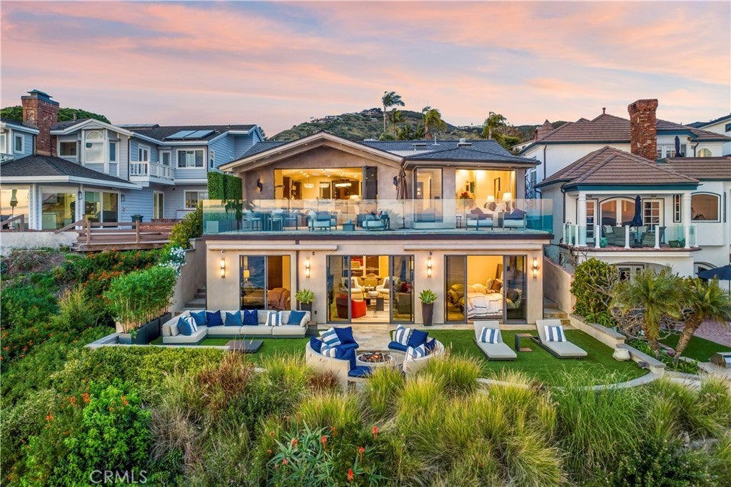 Experience the allure of South Laguna’s coveted Three Arch Bay in this newly furnished contemporary bluff front home. A private, guard-gated community offers exclusive access to a private beach and community amenities. Designed by Brion Jeanette and completely rebuilt in 2013, this estate underwent a refreshing update in 2022. The well-thought-out floor plan includes a main-level master suite plus 4 bedrooms and a bonus room. Drive up the long driveway to find ample parking and a three-car garage with an elevator leading to the first level. The private gated entry welcomes you to an entertaining courtyard boasting a waterfall spa, fire pit, and outdoor kitchen with a built-in BBQ and teppanyaki grill. A guest casita with a separate entry and a fully equipped home office enhance the property’s versatility. Glass double doors lead to the main level, showcasing expansive floor-to-ceiling Pacific Ocean views. Revel in the master suite with new hardwood floors, a walk-in closet, and a marble master bath with a steam shower. The main level also features a guest bath, a fully equipped kitchen with state-of-the-art appliances, a dining room, and a living room with a built-in bar. Bi-fold glass doors open onto the oversized deck, creating a seamless indoor/outdoor living space where you can watch dolphins, enjoy sunsets, or keep an eye on the kids playing below on the private beach. Descending to the lower level reveals two more ensuite bedrooms with ocean views, a bonus room, laundry, guest bath, and an entertainment/media area with a kitchenette/bar. This level opens onto the generous lower rear lawn with a fire pit, built-in seating, and electronic sunshades. Beach access is just steps away. The property is offered fully furnished with brand-new furnishings and a refreshed interior, making it the ideal home you’ve been anticipating.