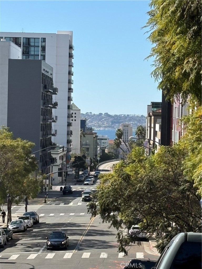 Live in San Diego's beautiful Cortez Hill! This pet-friendly, FHA and VA-approved condo has 2 bedrooms and 2 bathrooms. It's an upper lever corner unit bathed in natural light, with a modern kitchen adjacent to the living and dining areas. Panoramic views and spectacular sunsets from your private balcony. This Mills building offers 24/7 security, a 3,200 Sqft Fitness center (Historic Mills House by reservation only for residents), and convenient private parking with two tandem spots assigned to this unit. Perched above Cortez Hill, this exceptional condo overlooks downtown San Diego, with easy access to dining, entertainment, Little Italy, Gaslamp Quarter, and East Village. Just minutes from the San Diego Zoo, Balboa Park's museums and gardens, and the Fleet Science Center.