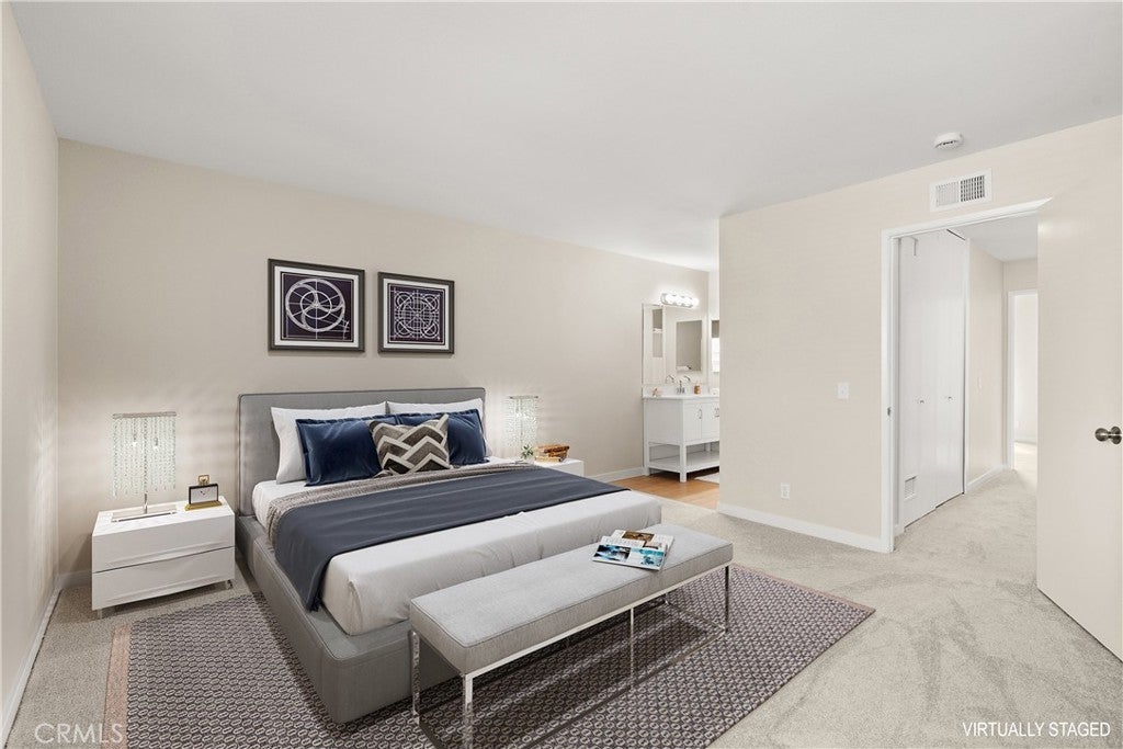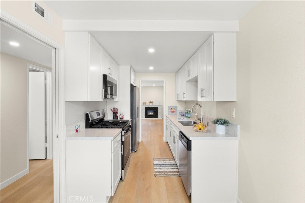 This charming Cherrywood Village home offers a perfect blend of coastal living and modern comfort. 2 bedrooms, 2.25 bathrooms, 1,075 sq. ft. home with 2 car garage is in a great location with easy access to the clubhouse and pool area. This much sought after development is approximately 3 miles from popular world class Huntington Beach “Surf City”. Step inside to find a light-filled floor plan featuring new windows, flooring, fresh interior paint, smooth ceilings and brand new recently installed updated kitchen with brand-new stainless-steel appliances, quartz countertops, modern cabinetry and recessed lighting. A spacious living room with a cozy fireplace leads to an enclosed private patio enables you to enjoy the cool Huntington Beach refreshing air, ideal for entertaining and relaxation. Brand new carpet to the upstairs 2 good-sized bedrooms. The spacious primary suite boasts a convenient vanity sink area. The second bedroom features a custom-sliding door to the private balcony, perfect for relaxing with coffee or a book. A convenient upstairs laundry area with washer and dryer completes the home. A 2-car detached garage adjoins the spacious patio to the living area of the home. Residents have access to community clubhouse, pool and spa. Cherrywood Village is a perfect location near to many fine dining restaurants, shopping options, schools, Helme Park, entertainment, and a short bike ride to fabulous beaches. Move-in ready! If you are ready for Coastal living this is your opportunity at an affordable price.