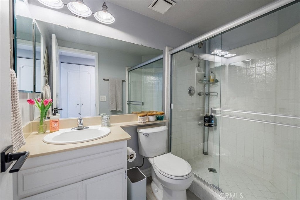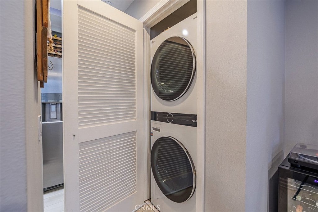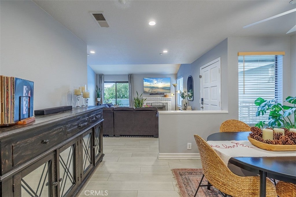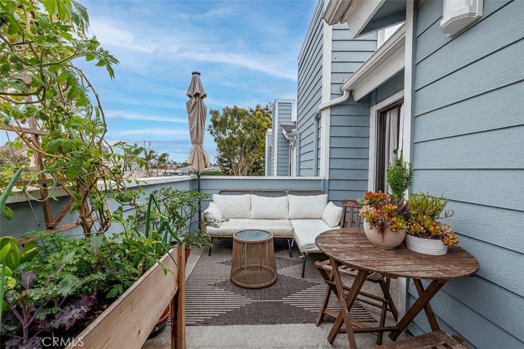 A prime coastal opportunity located within the gated community of Pelican Cove. This upper-level, cape cod style condo offers single-level living with no one above. The spacious living room features vaulted ceilings that open up the space, a gas fireplace, and access to a private balcony that brings in abundant natural light. The beautifully upgraded kitchen showcases quartz countertops, stainless steel appliances, a breakfast bar, an inviting dining area, and a walk-in pantry. The primary suite includes expansive mirrored closet doors and direct balcony access, creating an easy indoor-outdoor living space and added light. The hall bathroom features a walk-in shower. Newer luxury vinyl plank flooring runs throughout the home, complemented by recessed lighting and smart home features, along with ample storage space throughout. A stackable washer and dryer are conveniently located inside the laundry closet and are included. Additional features include two assigned gated subterranean parking spaces, a private storage closet, and access to a separate bike storage room, along with community pool, spa, and clubhouse. Conveniently located near shopping and dining, and just minutes from Huntington Harbor and Bolsa Chica State Beach, offering easy access to everyday amenities and coastal living.