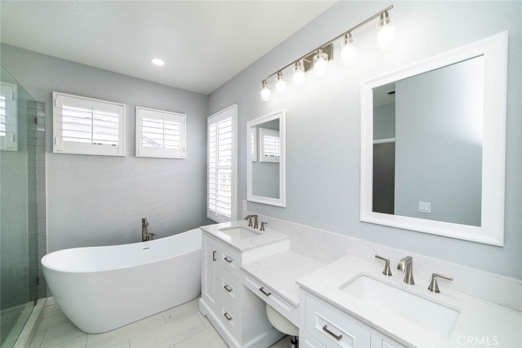 This highly upgraded home delivers the look and feel of modern living within one of Aliso Viejo’s most sought-after communities, offering exceptional design, quality, and curb appeal throughout. The second level features four spacious bedrooms, with the fourth bedroom offering closets but no doors, making it ideal as an upstairs den, office, or flex space. A conveniently located upstairs laundry room enhances everyday functionality. The primary suite features dual sinks, while custom cabinetry throughout the home pairs seamlessly with sleek quartz countertops. The kitchen is thoughtfully designed to be both elegant and highly functional, complemented by hardwood flooring, custom wood shutters, and fresh interior paint throughout. The home also features full PEX repiping for added peace of mind. The spacious yet cozy backyard is ideal for gatherings and outdoor enjoyment. Residents enjoy Village Cottage community amenities, including pool access, along with proximity to world-class beaches, award-winning Blue Ribbon schools, scenic hiking and biking trails, and convenient shopping and dining.
