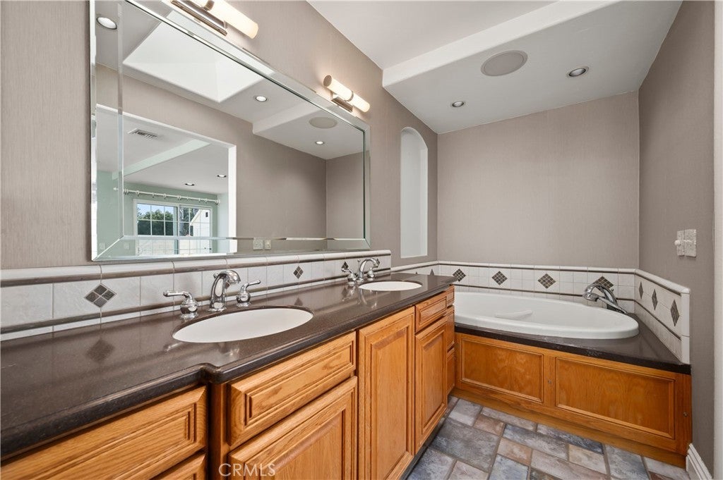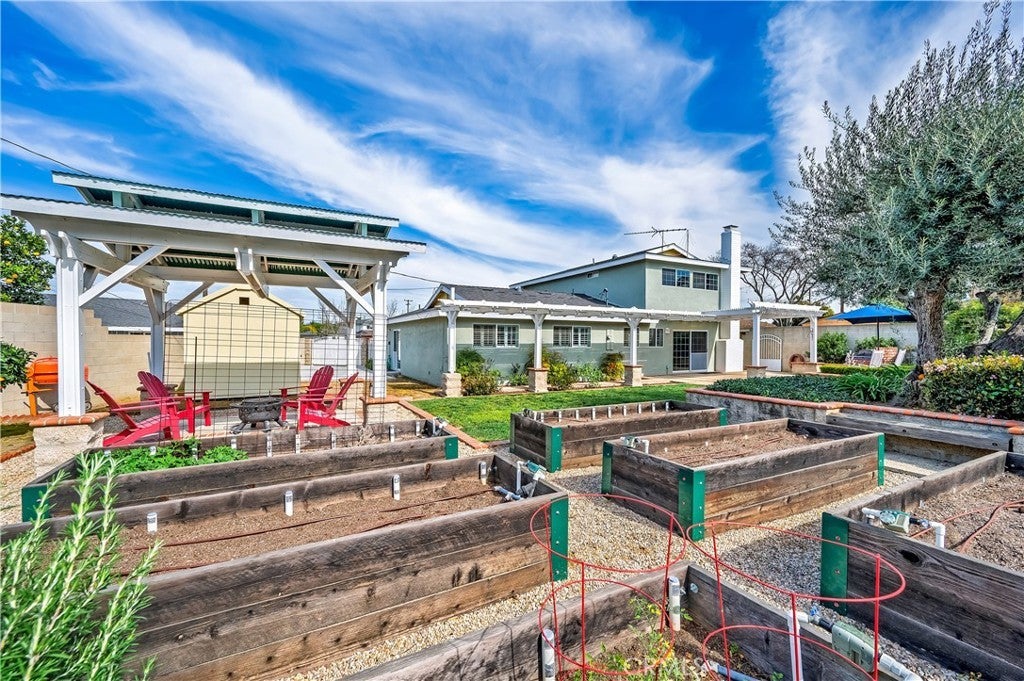 West Anaheim Treasure! This is a 5-bedroom home with almost 3000sqft of living space on an oversized 9000 sqft. lot with RV storage space! 4 bedrooms downstairs, including a large primary bedroom with an en suite bathroom, walk-in closet, skylight, and jacuzzi tub. The primary bedroom also features direct access to the side yard, opening up possibilities for an ADU or guest quarters. Two additional bathrooms downstairs! Upstairs is a bonus living area + 5th bedroom, as well as an additional bathroom with a shower. So much space, and so much storage! Immaculate and well cared for, with a new roof (2022), new exterior paint (2022), newer interior paint (~2021), remodeled kitchen with granite countertops and newer cabinetry, and other thoughtful finishes such as wood shutters, chair rail molding, 6-panel interior doors, and mirrored closet doors. Insulated walls, dual pane windows throughout, ceiling fans, and an attic fan all work to keep the home cool and efficient. This home features a full inside laundry room with ample storage, under-stair additional storage, as well as direct access to the 2-car garage. Spacious back yard with a formal patio and built-in barbecue, fruit trees, and a large raised-bed garden on a drip system. Additional storage in the brand new outside shed! Walk to the elementary school, Twila Reid Park, and pickleball courts! 15 minute drive to Disneyland, 10 minute drive to Knotts Berry Farm, and 10 minute drive to Buena Park Downtown shopping and entertainment. Oxford Academy eligible (testing required)! Check out our 3D Tour!