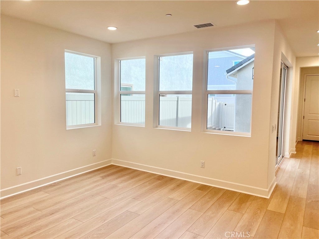Brand new home just minutes from the beach. This two level single family residence has a park-like paseo right in front of the home and a home office on the main level with 3 bedrooms upstairs. Open concept floor plan with upgraded quartz countertop and designer backsplash at kitchen. Kitchen island with breakfast bar. Beautiful primary bedroom suite with walk-in closet. Upstairs laundry. KitchenAid appliances with refrigerator included. Amenities include a community pool, spa and recreation center. HOA fees starting around $165 and going down to around $105 at build-out. Home is ready for move-in.