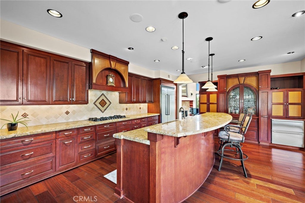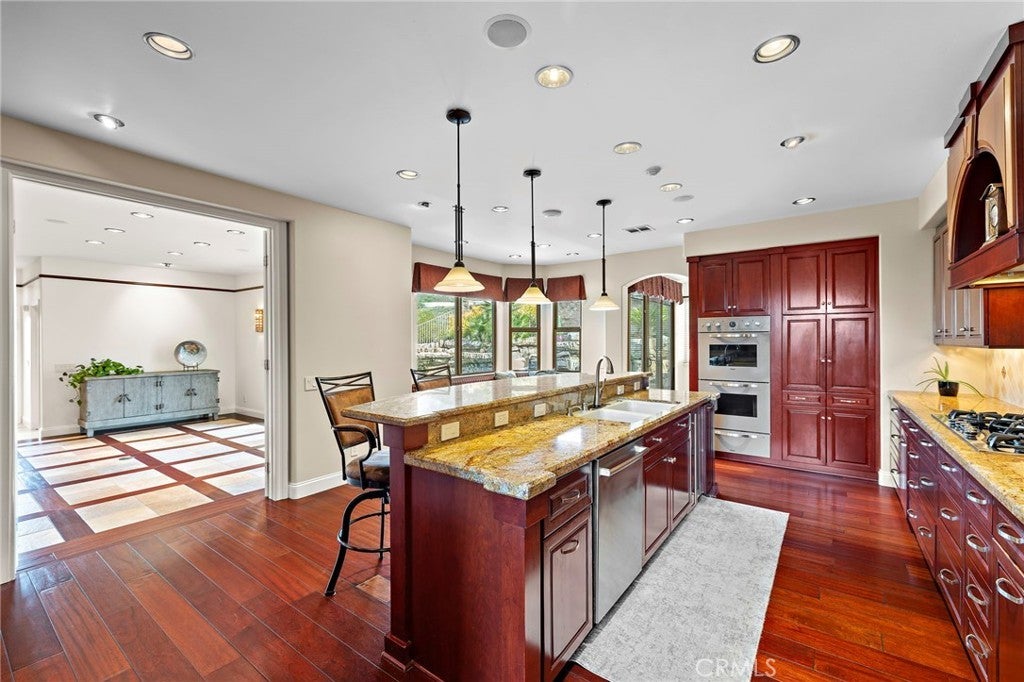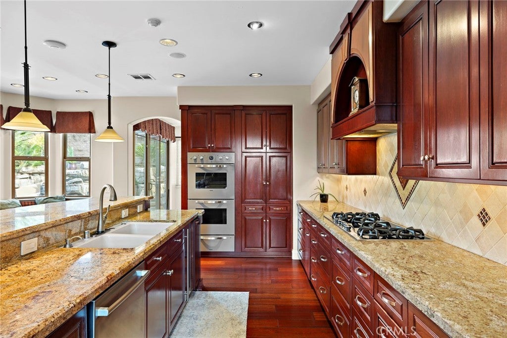 Distinguished Robinson Ranch Estate where mountain serenity meets resort caliber living. Framed by breathtaking mountain views and designed for both grand entertaining and intimate moments, this six-bedroom, four-and-a-half-bath home is a private sanctuary in one of Orange County’s most coveted communities. Beyond the front doors, an expansive, beautifully remodeled interior unfolds—where thoughtful design meets timeless elegance. A stunning gourmet kitchen anchors the home, showcasing custom cabinetry, upgraded professional-grade appliances, and generous spaces for gathering. Every detail has been carefully curated, from the remodeled baths to the upgraded roof and windows, blending beauty with enduring quality. Dual staircases and separate upstairs bedroom wings create the feel of two homes in one—ideal for multi-generational living or added privacy. Upstairs and downstairs laundry rooms offer effortless convenience. Modern enhancements—including a built-in media cabinet, audio visual cabinet under the stairs, dual Noritz tankless water heaters, a whole house fan, and a Mercola whole-house water filtration system—ensure comfort and wellness at every turn. 31 solar panels installed 8 years ago are fully paid for on top of it all! Step outside and discover a private resort rivaling five-star destinations. A sparkling pool and spa cascade with tranquil waterfalls, while a thrilling slide adds playful sophistication. Evenings are best spent in the fully appointed outdoor kitchen—complete with built-in BBQ, refrigerator, television, and fireplace—where laughter lingers in the warm coastal air and mountain silhouettes create a dramatic backdrop. With six spacious bedrooms and a three-car garage, the home effortlessly accommodates both refined entertaining and relaxed daily living. Life in Robinson Ranch extends beyond your doorstep. Award-winning schools, scenic hiking and biking trails, and proximity to Wilderness Park, O’Neill Regional Park, Tijeras Creek Golf Course, and Rancho Santa Margarita Lake create a lifestyle rooted in nature and connection. The community’s private amenities—including a gated pool and spa, parks, sport courts, and tot lots—complete the experience. At the base of the majestic Saddleback Mountains, where golden sunsets meet rolling hills, this extraordinary location redefines luxury living. This is not simply a home—it is a retreat, a gathering place, and a statement of elevated Southern California living.