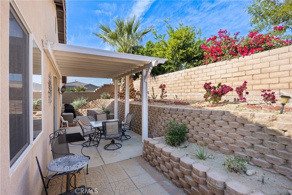 Welcome to 65565 Acoma Ave #77, a delightful home located in the well-maintained 55+ community of Desert Willows in the up and coming City of Desert Hot Springs. This inviting 2bd/2ba residence offers a relaxed, low-maintenance lifestyle surrounded by stunning desert and mountain views. Rarely available 2 car garage model with direct access and proximate interior laundry. The upgraded private backyard features a tall pergola surrounded by desert landscaping, perfect for afternoon and evening relaxation or entertaining. The home features a furnished, comfortable and functional layout with bright living spaces, perfect for everyday living or seasonal enjoyment. Residents enjoy access to a variety of HOA amenities and beautifully maintained common areas—ideal for staying active and connected. Desert Willows community residents enjoy a clubhouse, pool, spa, fitness center, billiards room, and more. Conveniently located near renowned natural hot mineral spas, shopping, dining, and just a short drive to Palm Springs and the Coachella Valley, this home is perfect for those seeking an affordable weekend desert retreat or full-time residence in a welcoming, age-qualified community. Experience easy living, sunshine, and a true sense of community in this well kept home.