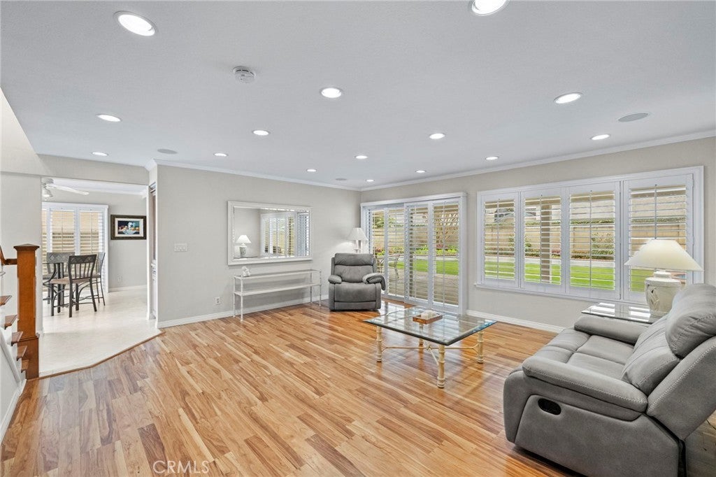 Please note: COZY CUL DE SAC LOCATION! (8-9 homes) 2 BONUS ROOMS:Could be FIVE bedrooms easily, lots of space for adding closet. 10+ CURB appeal Approach the front door is inviting! NOTICE the elegant wide FRONT BAY WINDOW* the pretty immaculate GARDENS with the impeccable green grass*The CLASSIC paneled entry door* The replaced WINDOWS all with wide-blade newer SHUTTERS* *Crowned by a long-lasting STEEL roof ! MORE inside:The stage is set by the muted neutral tones of taupe, Bone white and white accents throughout. A Tiled entry opens to both Kitchen,eating area and living room. Interior Light compliments the remodeled Kitchen-granite counters, roll-out shelves, a walkout slider, and charming eating area set in the BAY.*a spacious LR allows viewing of the large back garden/grass area.sitting . Laminate practical flooring surfaces are throughout the main floor. A quiet FLEX room is next to the LR, for library, family room, or guest bedroom i...enhanced by a Gracefully styled fireplace. Step out from the LR slider to the generous outdoor, covered, shady spot, so perfect for outdoor lounging *An oversized spa is waiting for your relaxation* Upstairs: a genteel primary room awaits with bath ensuite as well as 2 other bedrooms AND another possible bedroom, OR playroom, office computer/homework spot. The 3 car garage with HUGE storage above is a MUST HAVE for homeowners. Come see! Shopping is SO convenient: DISTRICT is so closeby your $$ will fly away either at the top drawer restaurants, or shops...COSTCO anyone? Excellent commuting roads get you everywhere quickly . Steps away is a favorite Magnolia Park providing running, game spaces and fun kiddie and adult playtime! OLD TOWN Tustin is a 15 minute bike ride away. YOU"LL LOVE IT!