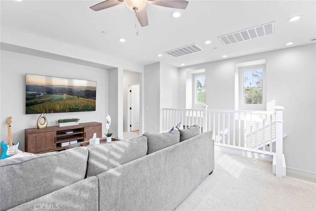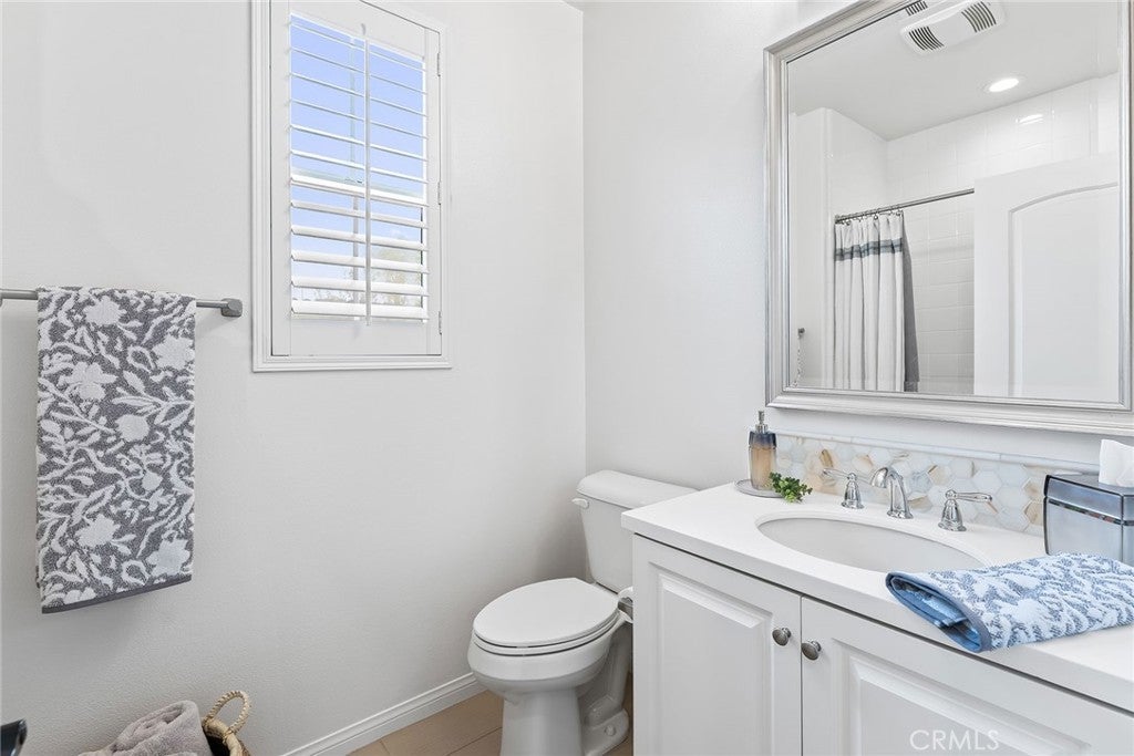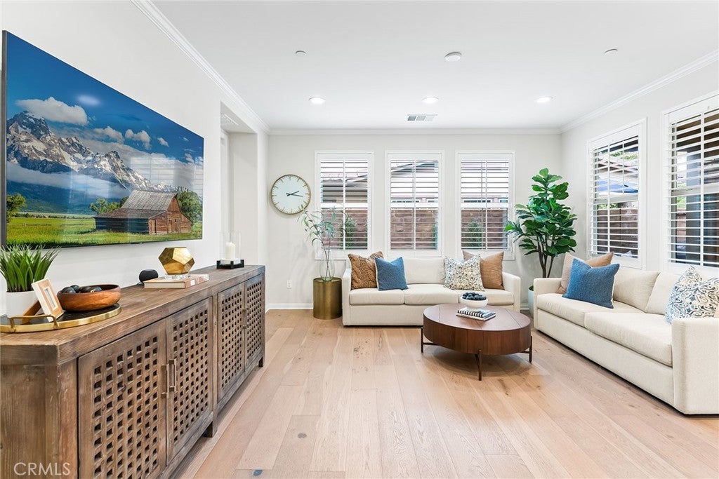 Outstanding corner home offering comfortable 55+ resort-style living in Rancho Mission Viejo. The open main living area features wide plank French oak flooring, 9-foot ceilings and a kitchen with seating at the granite island, stainless steel appliances, soft close drawers, abundant cabinetry, and a separate dining area flowing into the family room. Sliding doors open to a covered patio and additional side yard space for easy indoor-outdoor living. The main level includes a primary suite with custom woodwork, dual sinks, marble backsplash, zero-entry shower and spacious walk-in closet. Also on the main level is an additional bedroom, full bath, spacious laundry room with ample cabinetry, and direct garage access. Upstairs offers a large private retreat with a secondary living area, bedroom and full bath. The home also includes AC, whole house fan, fresh interior paint and crown molding, as well as plantation shutters throughout. Unwind at the 55+ amenities, including but not limited to the Getaway Clubhouse (a short walk away) or The Outlook where you can enjoy the lap pool, cabana space, indoor-outdoor dining areas, barbecues, fire pits and TVs. Additional amenities include fitness centers, social clubs, activities and more. When family/friends visit, venture over to the nearby Hilltop Club pool, bar, gym, spa, bocce ball and arcade. Close to shopping, dining and South Orange County destinations. Do not miss this exceptional opportunity!