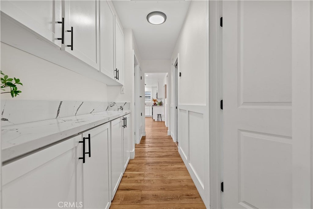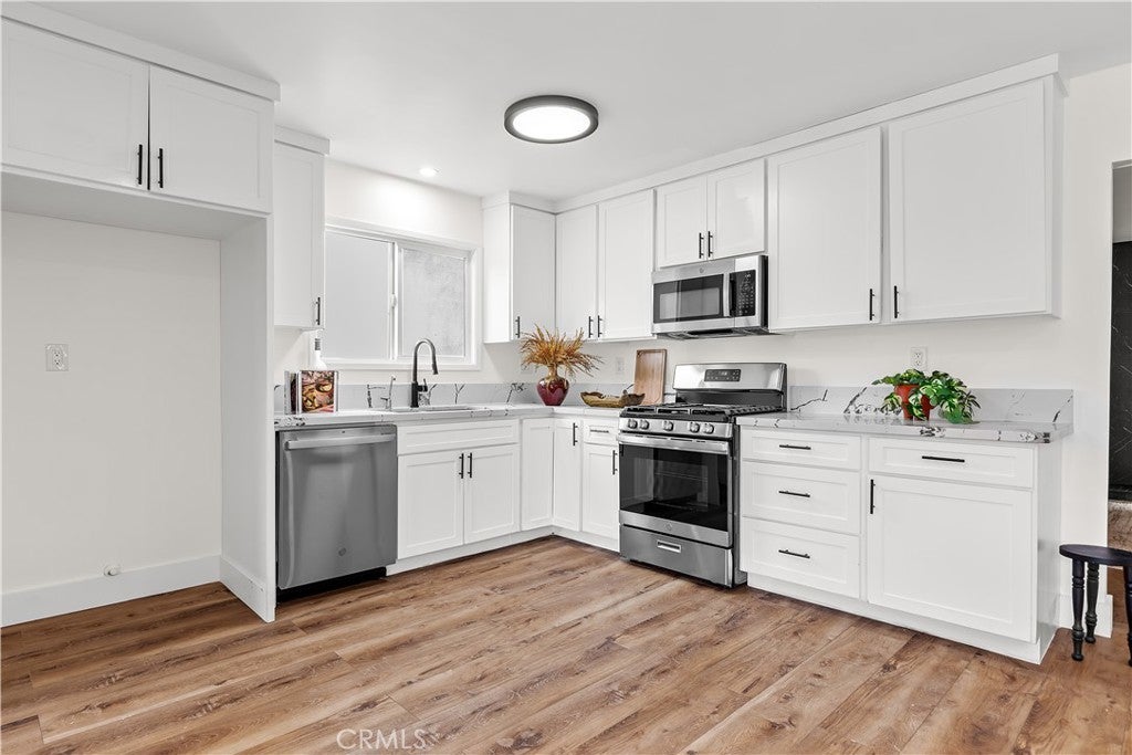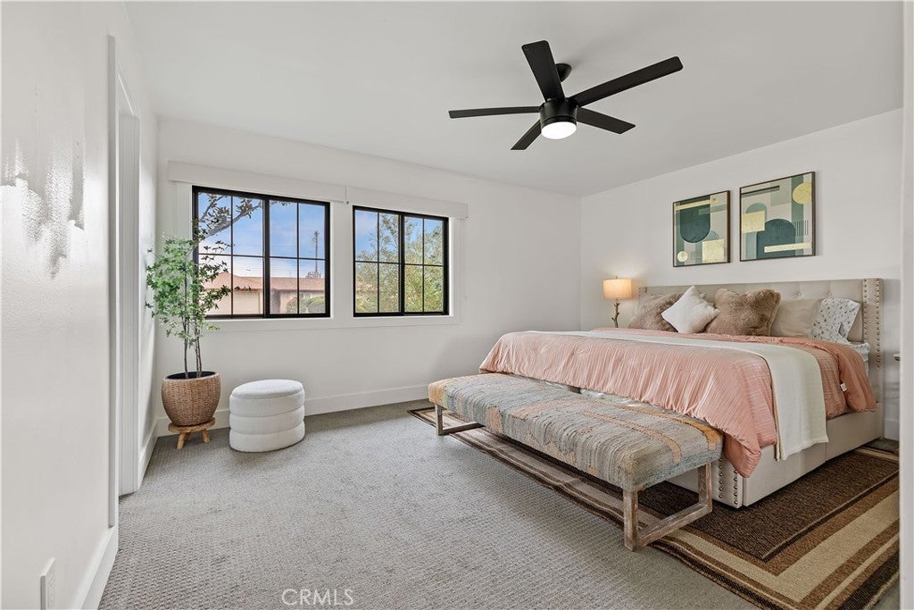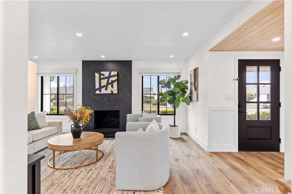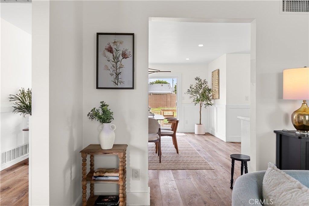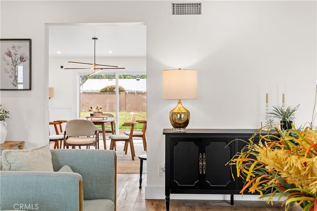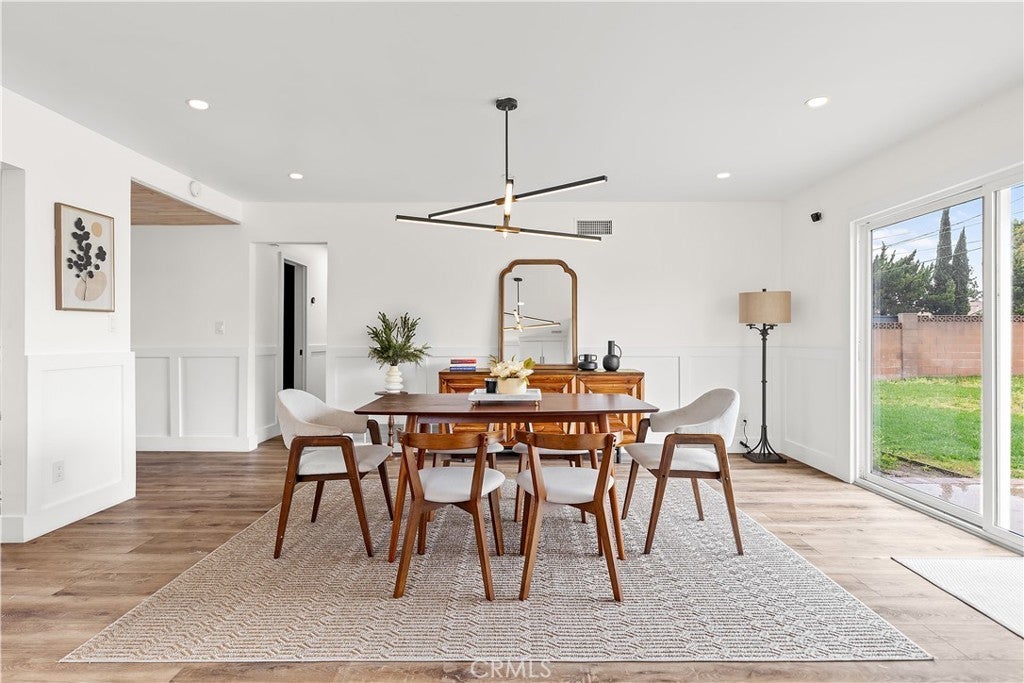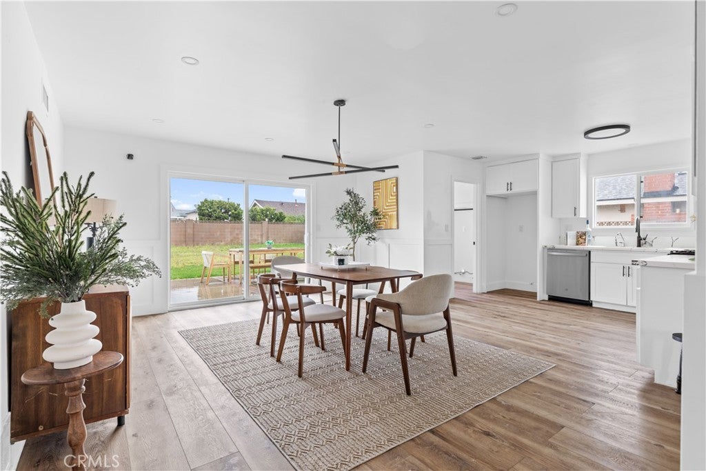 Discover this impeccably updated single-story residence, thoughtfully positioned on a generous 9,200 sq ft lot in a highly desirable Anaheim neighborhood. Spanning approximately 1,618 sq ft, the home offers 3 bedrooms and 2 bathrooms, seamlessly combining contemporary upgrades with exceptional potential for future expansion—including strong ADU and SB 9 opportunities (buyer to verify all zoning and regulations). Step inside to find elegant vinyl plank flooring throughout the main living areas, complemented by plush carpeting in the bedrooms. The open-concept living and dining spaces are bathed in natural light, accentuated by recessed lighting and a striking modern chandelier that serves as a sophisticated focal point. The fully remodeled kitchen is a chef’s delight, featuring crisp white shaker-style cabinetry, durable quartz countertops, premium stainless steel appliances, and sleek contemporary hardware. The primary suite includes dual closets and a ceiling fan with integrated lighting, while the secondary bedrooms are well-proportioned and equipped with ceiling fans featuring lights. Additional comforts include custom window shades throughout for enhanced privacy and energy efficiency. Notable recent upgrades encompass a tankless water heater, a whole-home water softener system, a Tesla charging station, and updated designer lighting fixtures. The expansive backyard offers abundant space for outdoor entertaining, a future pool, or accessory dwelling unit development under applicable SB 9 guidelines—providing significant long-term value and flexibility. Perfectly situated just steps from the scenic Anaheim Coves Trail—ideal for walking, jogging, and biking—the property enjoys immediate proximity to premier destinations including Angel Stadium, Honda Center, OC Vibe, and Island Golf Center. This rare combination of modern comfort, prime location, and investment potential creates an exceptional opportunity. Schedule your showing today!!!
