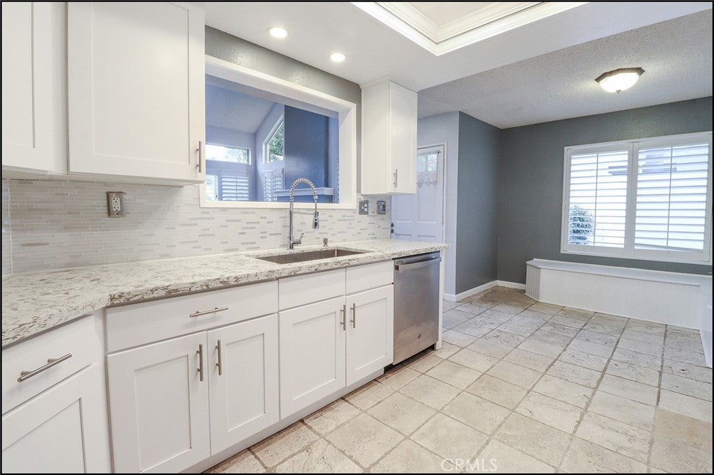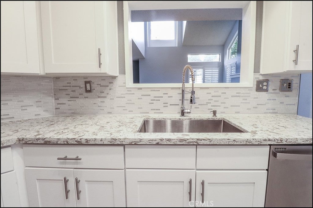 SPECTACULAR END UNIT LOCATION WITH A HUGE WRAP AROUND YARD PERFECTLY LOCATED WITH AMAZING VIEWS OF THE PARK AND A SPACIOUS FLOOR PLAN! Exceptional property offering a uniques end unit two story townhouse style floor plan with large living and dinging room, fireplace and two story ceilings in the living areas with large window to pour in plenty of natural light. Kitchen has been upgraded with white cabinets, stone countertops, designer backsplash, stainless steel appliances including refrigerator, contemporary style sink, designer faucet, recessed lighting and opens to the dining room with custom built-in cabinets, seats and drawers. There is also a large powder room, direct access to the attached garage and sliding door access to the large and inviting back yard. Second story offering a spacious master suite with vaulted ceilings, large closet and bathroom featuring a large vanity with stone countertop, walk-in shower and upgraded fixtures. Second bedroom overlooking the large yard and amazing views of the park and second full bathroom at hallway with upgraded vanity, designer mirror and upgraded fixtures. Huge wrap around yard with lawn area, planters with tropical landscaping, large patio are with cover and an amazing view of park and greenbelts. Resort style community pool, spa, clubhouse, tennis, sports courts, highly sought after schools, excellent proximity to Aliso Viejo Town Center, easy toll road (73) and beach access (via 133) and nearby hiking, biking and nature trails!