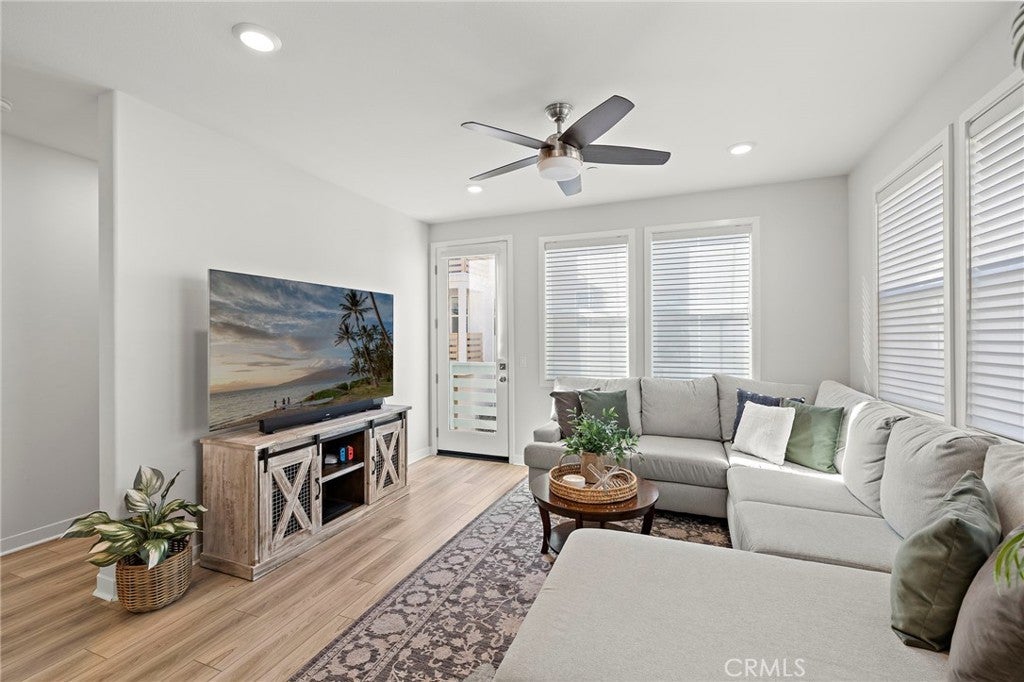 Welcome to this beautifully upgraded 2-bedroom, 2.5-bath home with versatile flex space, ideally situated on a desirable corner lot in the highly sought-after Rienda Village of Rancho Mission Viejo. Thoughtfully designed for modern living, this home blends style, comfort, and functionality in every detail. On the first floor, you’ll find a flexible bonus space that offers incredible versatility. Perfectly positioned for privacy, it can easily function as a home office, art or music studio, playroom, media room, home gym, study area, reading nook, or even a guest retreat—adapting seamlessly to your lifestyle needs. The main living level features a bright open-concept layout centered around a stunning chef’s kitchen. Highlights include an oversized island, stainless steel appliances, a sleek stainless steel hood, custom backsplash, pull-out cabinet shelves, and a dedicated bakeware drawer for added organization and convenience. Luxury plank vinyl flooring and abundant natural light enhance the space, while a private balcony just off the living area provides the perfect spot to enjoy your morning coffee or unwind in the evening. Upstairs, you’ll find two spacious bedrooms, including a serene primary suite designed for relaxation, along with a convenient laundry closet. At the top, a private rooftop deck showcases breathtaking 360-degree panoramic views—an incredible setting for entertaining guests, soaking in sunsets, or simply enjoying the peaceful surroundings. Additional highlights include energy-efficient features with owned solar, central heating and air conditioning, and modern finishes throughout. Residents of Rienda enjoy access to resort-style amenities including multiple pools, clubhouses, fitness centers, parks, and scenic walking trails. Located within a highly regarded school district, just a short stroll to Boulder Pond & Playground and only 15 minutes from the beach, this home truly offers the best of elevated coastal living.
