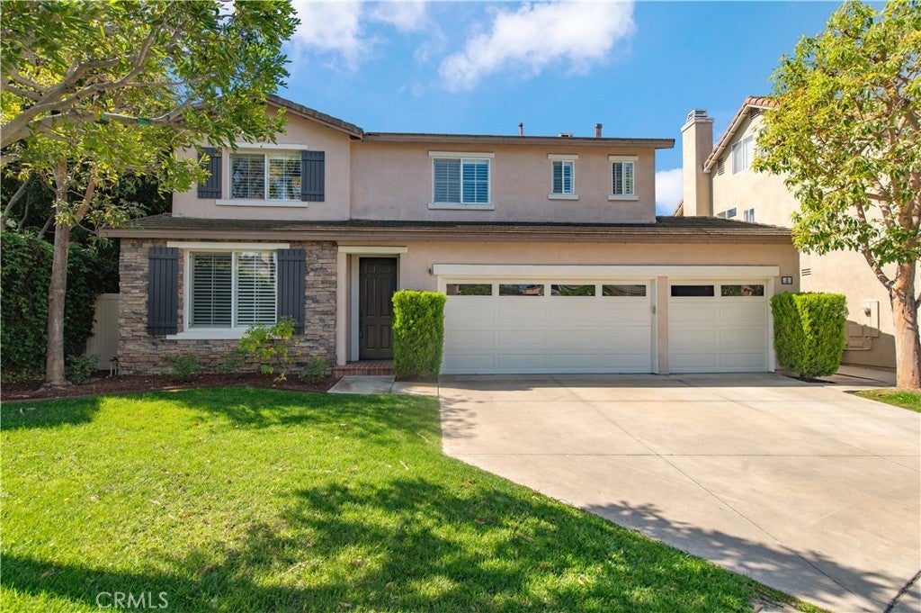 Beautiful 2 Story Home in the gated community of Oak Creek, Ashford Place Tract, with premium location on a cul-de-sac, with a large private back yard & 3 car garage. Remodeled Four-Bedroom, Two & a half bath turnkey featuring a newer kitchen, carpets, lighting, bathrooms and exterior landscaping. Come live in the most popular floor plan in Ashford Place by Cal Pacific with a 3 car garage and "Super Family Room", complete with a cozy fireplace. Stone like tile flooring throughout lower floor plan, plush carpet stairs, Gourmet Kitchen Island and Plantation Shutters. Larger lot end of cul-de-sac. Master Bedroom has large walk-in closet, large soaking tub and a separate walk-in shower. Separate laundry room upstairs. Enjoy Oak Creek upscale living with The Spectrum nearby, surrounding restaurants and walking distance to the local Elementary School.