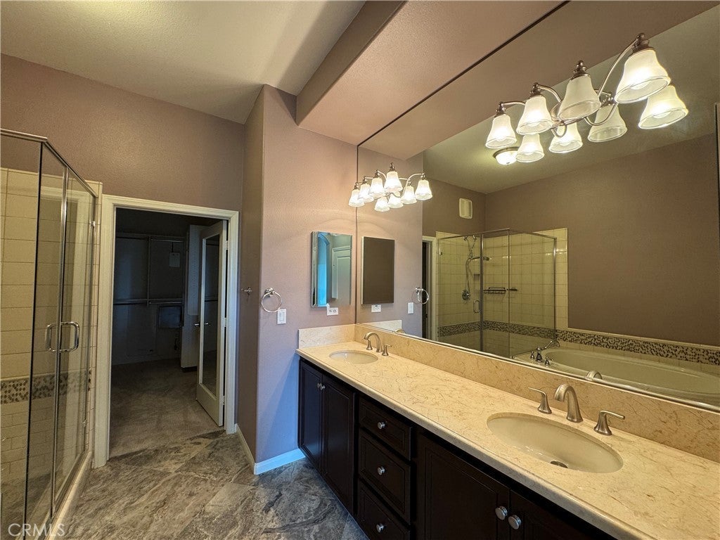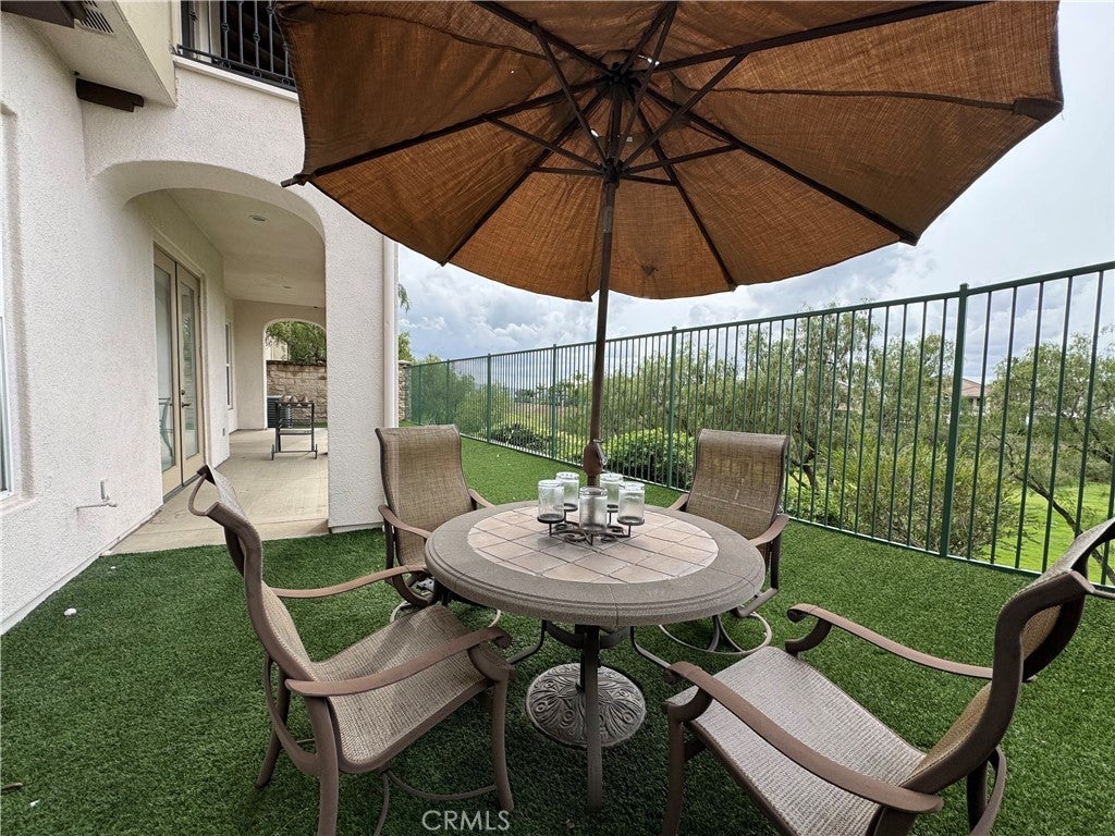 Welcome to this beautifully upgraded residence offering sunset, golf course, and city light views over Black Gold Golf Course in the highly sought-after San Lorenzo subdivision of Vista Del Verde. Designed for both comfort and entertaining, this home showcases an inviting open layout and timeless upgrades throughout. Rich wood flooring, brand new carpet, a cozy fireplace, media niche, plantation shutters, and dual-pane windows create a warm yet sophisticated atmosphere. Expansive living and dining areas are filled with natural light and flow seamlessly into the upgraded kitchen. The kitchen features quartz countertops, stainless steel appliances, built-in refrigerator, built-in microwave and oven, gas cooktop, range hood, water filtration system, and water softener. A beautifully detailed custom tile backsplash behind the cooktop adds character and designer appeal. Quality craftsmanship and thoughtful enhancements are evident throughout the home. The spacious master bedroom enjoys serene golf course views and abundant natural light, with ample space for a sitting area. The spa-inspired master bathroom includes a tiled oval soaking tub, separate tiled shower, and a quartz-topped double-sink vanity. Just off the master bathroom is a large walk-in closet with a mirrored closet door and professional custom organizers. The second bedroom includes mirrored closet doors and built-in organizers. The hall bath offers a tub and shower combination with quartz counters and an upgraded decorative backsplash. The powder room features a pedestal sink. The third bedroom is currently configured as an office/den and does not include a closet or interior doors, offering flexible space ideal for a home office, study, or guest retreat. Built in 2008, the home also offers direct-access garage and driveway parking. The garage features epoxy flooring, professional storage cabinetry, dedicated shoe storage, and built-in cabinetry with a work surface. Residents enjoy resort-style association amenities including a clubhouse, pool, spa, BBQ and patio area — perfect for relaxing or entertaining. Located within the highly regarded Placentia-Yorba Linda Unified School District and just moments from Yorba Linda High School. Conveniently close to walking trails, shopping, dining, and local amenities, this home presents a rare opportunity to enjoy luxury, comfort, and premium views in one of Yorba Linda’s most desirable communities.