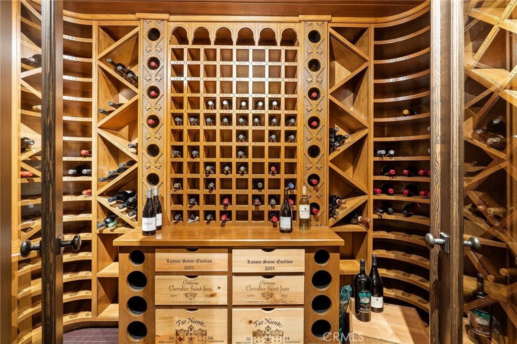 Beamed Ceilings, Breakfast Bar, Built-in Features, Balcony, Breakfast Area, Cathedral Ceiling(s), Separate/Formal Dining Room, Eat-in Kitchen, High Ceilings, Pantry, Stone Counters, Recessed Lighting, Primary Suite, Walk-In Closet(s), Atrium, Bar, Multiple Staircases, Wet Bar, Wine Cellar, Wired for Data, Wired for Sound