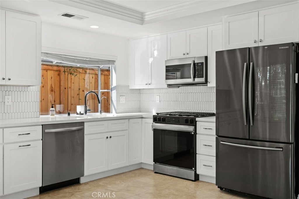 Beautiful 4-bedroom single-family home featuring a functional floor plan with formal living and dining rooms, plus a spacious family room that opens to the kitchen — ideal for both everyday living and entertaining. The remodeled kitchen offers updated finishes, abundant cabinetry, and generous prep space. The primary suite features a beautifully renovated bathroom, providing a fresh, modern feel. Interior highlights include travertine flooring, recessed lighting, 5-inch baseboards, 2-inch wood blinds, and laminate flooring in one bedroom. Secondary bathrooms have also been updated. Enjoy added privacy with neighbors on only one side of the property, along with a spacious backyard perfect for relaxing or entertaining. A cold plunge tub on the patio may remain for tenant use, if desired. Conveniently located within walking distance to Hidden Hills Elementary School and close to parks, shopping, and local amenities.