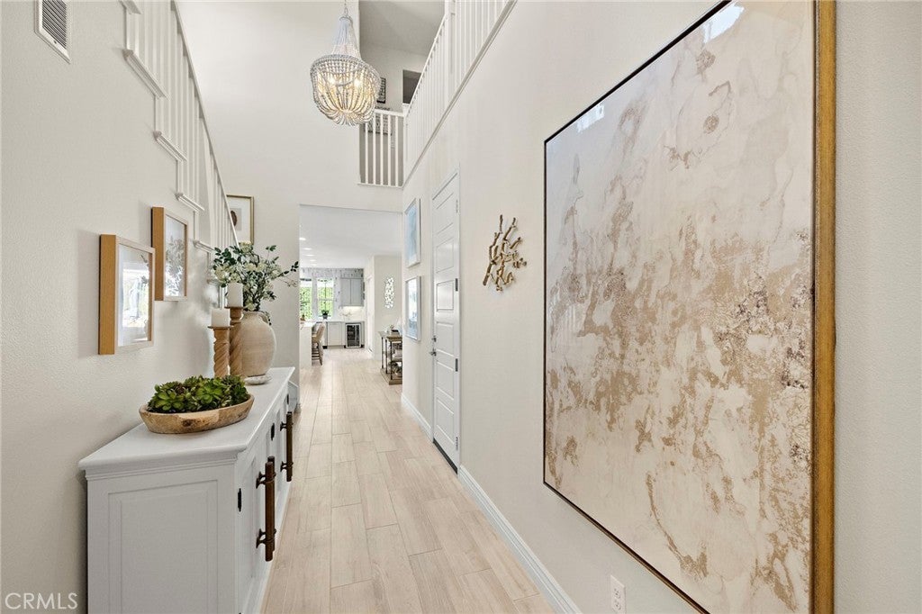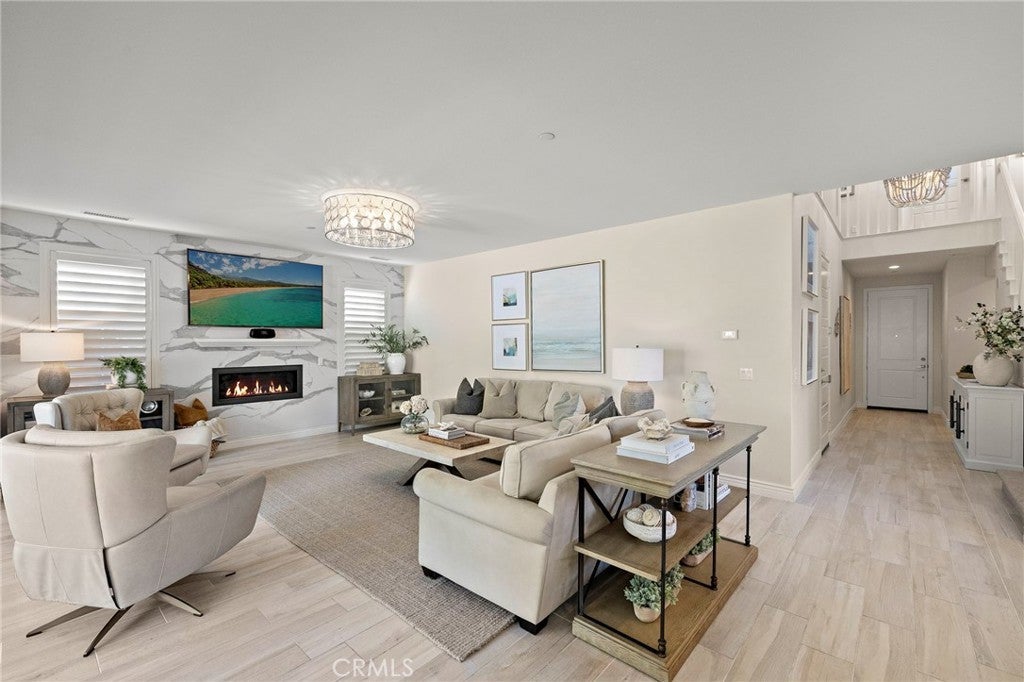 What truly sets this home apart is its breathtaking mountain views, visible from nearly every window and changing beautifully with the seasons from snow-capped peaks to serene natural scenery. Situated at the quiet end of the street, the home offers exceptional privacy and a peaceful atmosphere. This premium corner lot is ideal for entertaining- host gatherings and parties without noise concerns, while enjoying expansive backyard privacy and stunning sunset views. The backyard has BBQ island with polished concrete counters, BBQ and brand new refrigerator, and upgraded 30' turf lawn ready for a pool. With over $250,000 in upgrades in this home it effectively offsets the cost of future landscaping or a pool. Dual Bi-folding doors open up to create a large living space continuing the wood look flooring with linear stone fireplace media wall. Step inside to a modern coastal living retreat, custom designed for both comfort and entertaining. Features include waterfall quartz countertops, Chef’s kitchen with a striking backsplash that flows seamlessly from the kitchen into the dining area, Farm Sink, soft dove gray shaker cabinets with soft close hinges and pull out drawers, wine refrigerator and commercial style hood. All florescent lighting has been upgraded to dimmable LED recessed lighting and extended built-in closets through out the house for organizing. Built-in dining buffet with lighted glass front cabinets, upgraded high end chandeliers in your Entry way and Living room and easy care kid/pet friendly wood-look flooring. Downstairs bedroom suite with full bath with marble wall shower plus a powder bath for guests for convenience. Upstairs are two secondary bedrooms, one with private view balcony to enjoy the sunset, mountains and ocean views. Each boasts a private bathroom with upgraded flooring, shower walls, and quartz countertops. Large bonus room for upstairs entertainment or 5th Bedroom option. Primary Bedroom with gorgeous Capiz chandelier & huge walk-in closet with custom organizers. Ensuite bath with upgraded lighting, dual sinks, upgrade quartz countertops, shower with marble wall backsplash and dual shower heads for steam showers. Enjoy the spa experience with an extra large bathtub behind the glass doors for a warm bath retreat. Upstairs laundry room with designer tile and W/D with gas dryer. With many more exceptional upgrades and access to incredible resort living-this is more than a house-it's the home you've been waiting to find.