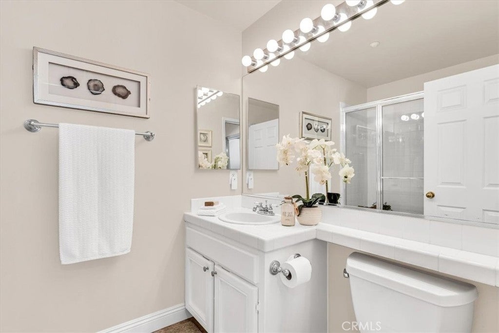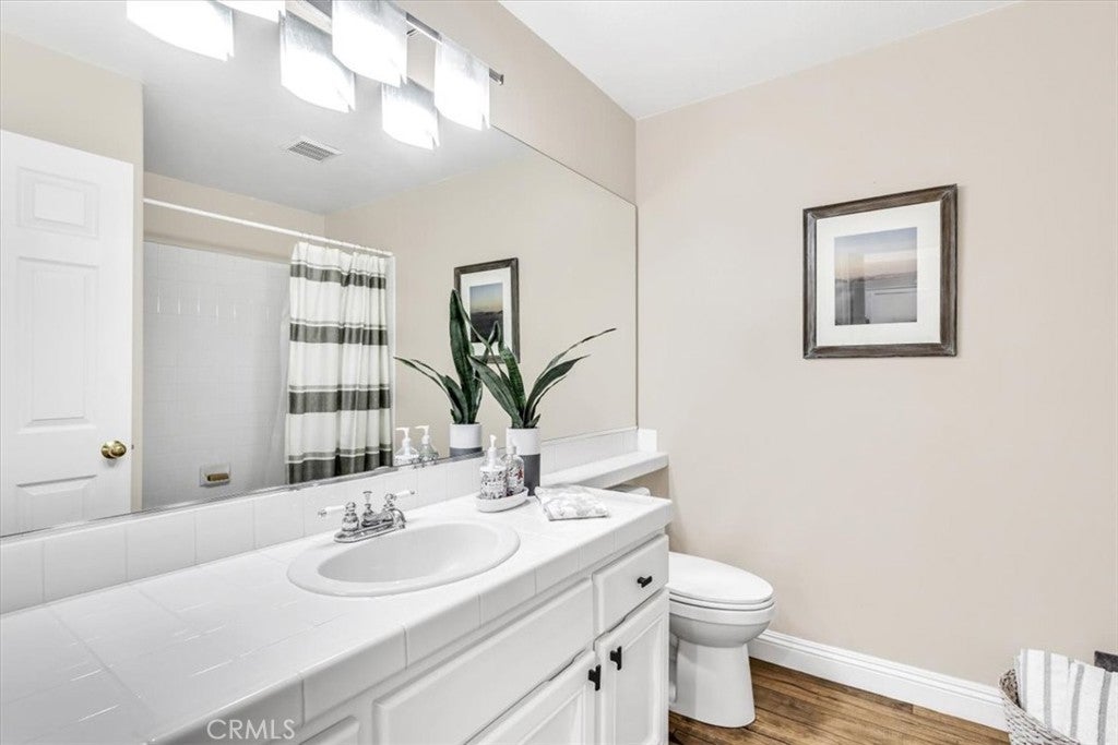 Hear the Mission Bells Ring and Enjoy Cool Coastal Breezes from this beautifully updated 3-bedroom, 3-bath Mesa Vista residence, offering privacy and stunning hillside views in the heart of San Juan Capistrano. Enter through a private gated courtyard into the largest floor plan in the community, where soaring vaulted ceilings, abundant natural light, and a thoughtfully placed skylight enhance the open-concept design. Designed for effortless Single-Level-Style Living, the main level features an impressive living room with sliding glass doors that lead to the outside living space with sweeping views and a custom water feature, creating a serene indoor-outdoor retreat. The room is accented by a gas fireplace, dual pane windows and engineered wood floors. The dining room is open to the kitchen and offers an easy flow for entertaining. The kitchen features beautiful granite countertops, stainless appliances and freshly painted cabinetry and is open to the family room which is the perfect flex space. The MAIN FLOOR spacious primary suite has a large walk-in closet and a beautifully remodeled ensuite bath showcasing dual vanities, custom cabinetry, and a frameless glass walk-in shower. Sliding doors seamlessly connect the primary suite to the back patio. Also located on the main floor you will find a secondary bedroom, the second full bath with tub/shower combination, and interior laundry which is conveniently located in the hallway. Upstairs, an oversized ensuite third bedroom—originally designed as a second primary suite—offers rolling hill views, dual mirrored closets, and a glass-enclosed step-in shower. Additional storage spaces enhance the functionality and convenience of the upstairs level. Upgrades include engineered wood flooring, custom interior paint, and a newer water heater. Situated on a quiet, single-loaded cul-de-sac with a driveway and direct-access two-car garage. Mesa Vista residents enjoy three community pools, a paved walking paseo, optional RV parking, and No Mello-Roos. Conveniently located near award-winning schools, shopping, hiking trails, beaches, golf, equestrian facilities, and the historic charm of downtown San Juan Capistrano. Welcome Home!