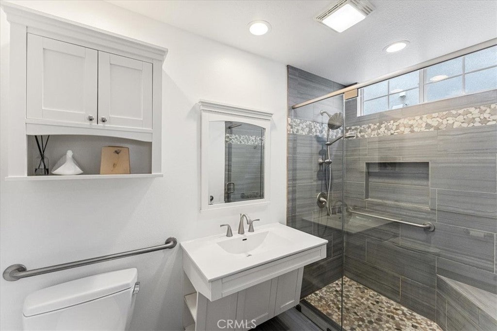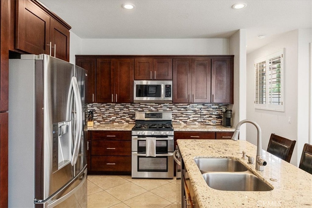 Welcome to this beautifully renovated executive home in the prestigious gated community of Sedona in Tustin Ranch. Offering approximately 2,136 square feet of thoughtfully designed living space, this spacious four-bedroom, three-and-a-half-bath residence blends modern upgrades with timeless elegance. Step inside to soaring vaulted ceilings and an open, light-filled floor plan enhanced by real hardwood flooring and elegant plantation shutters throughout. The inviting living area is anchored by a cozy fireplace, creating the perfect setting for relaxing evenings or intimate gatherings. The fully remodeled kitchen is a true showpiece, featuring stunning granite countertops, stainless steel appliances, contemporary finishes, and quality craftsmanship. Designed for both everyday living and entertaining, it flows seamlessly into the dining and family areas. A highly desirable main-floor en-suite bedroom offers flexibility for guests or multi-generational living and includes a beautifully remodeled ADA-compliant bath. Upstairs, additional bedrooms provide generous space and comfort. This move-in ready home has been extensively upgraded for both convenience and energy efficiency, including a newer HVAC system (2016), tankless water heater, leased solar system with backup battery, and an electric vehicle charger. Outdoor improvements include a patio cover and new fencing, creating a private and inviting backyard retreat. A two-car garage completes this exceptional property. Residents of Sedona enjoy resort-style HOA amenities including a pool, spa, and barbecue area, all within a beautifully maintained gated setting. This is a rare opportunity to own a turnkey home in one of Tustin Ranch’s most sought-after communities.