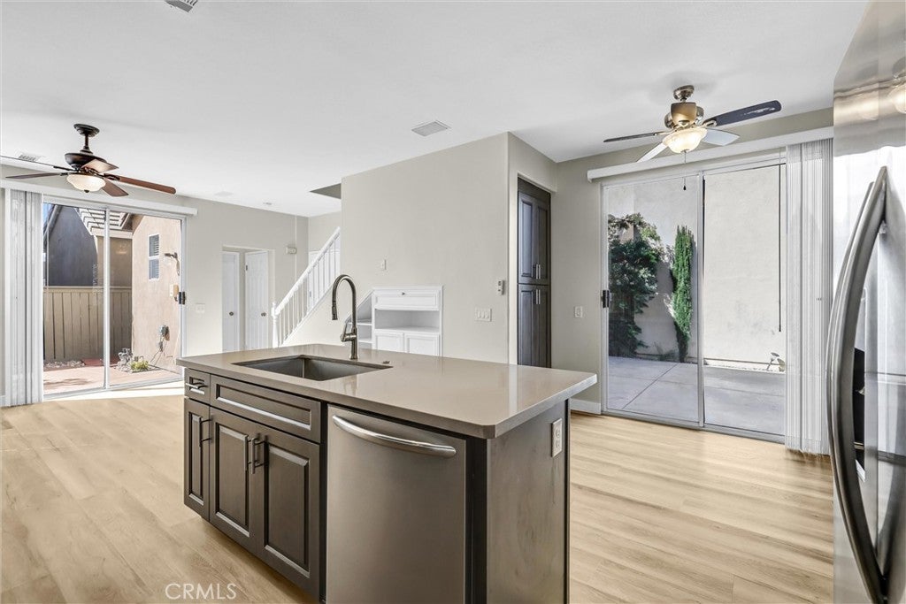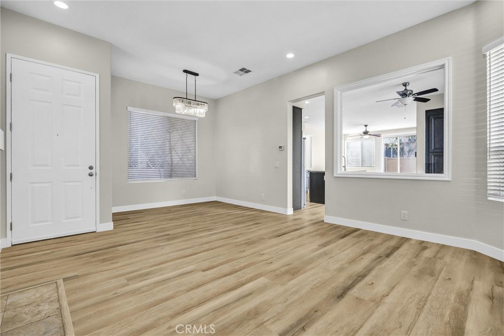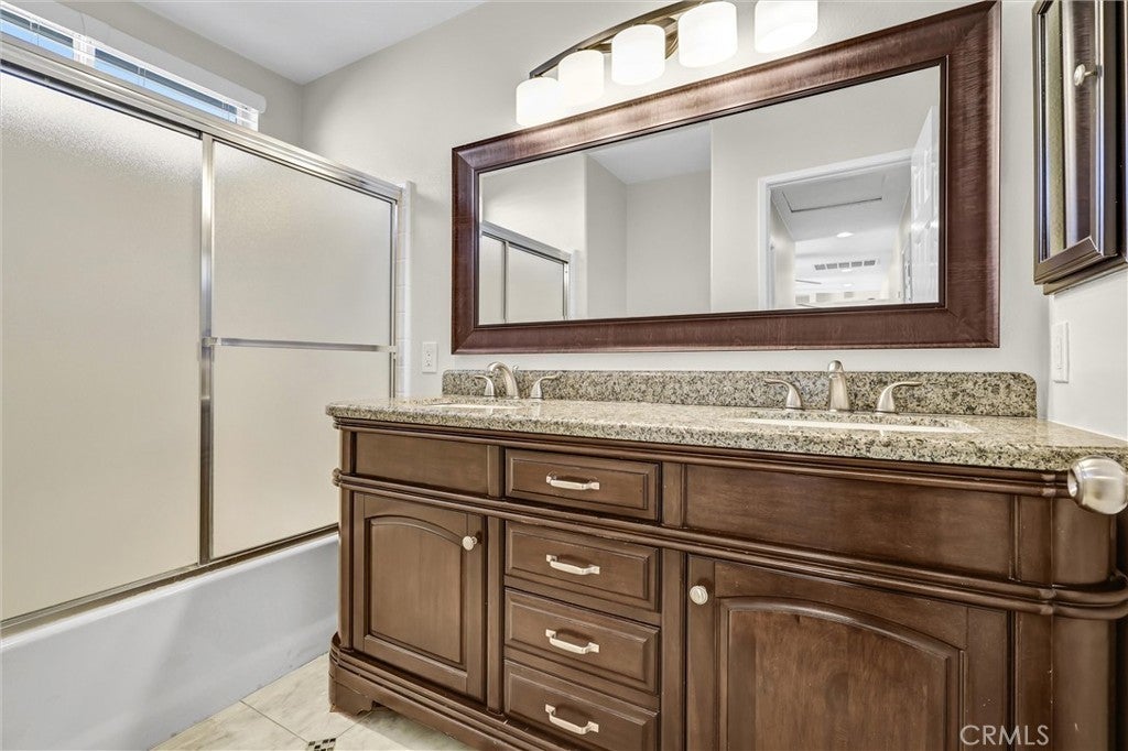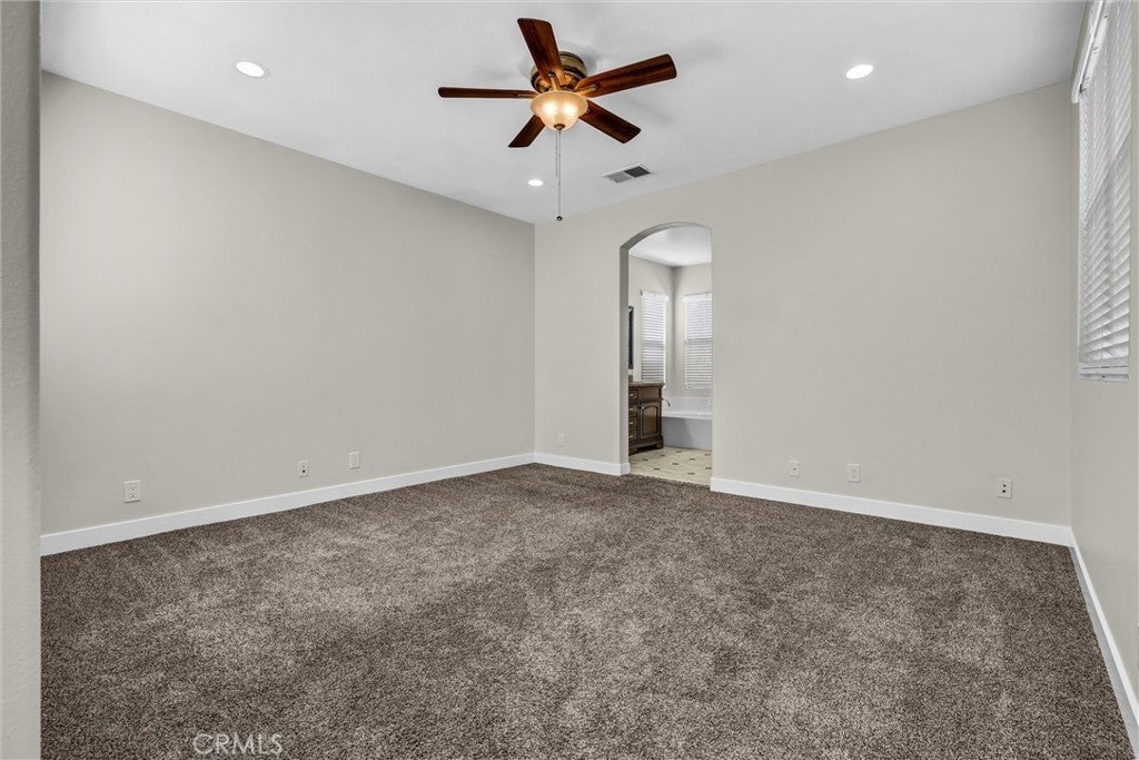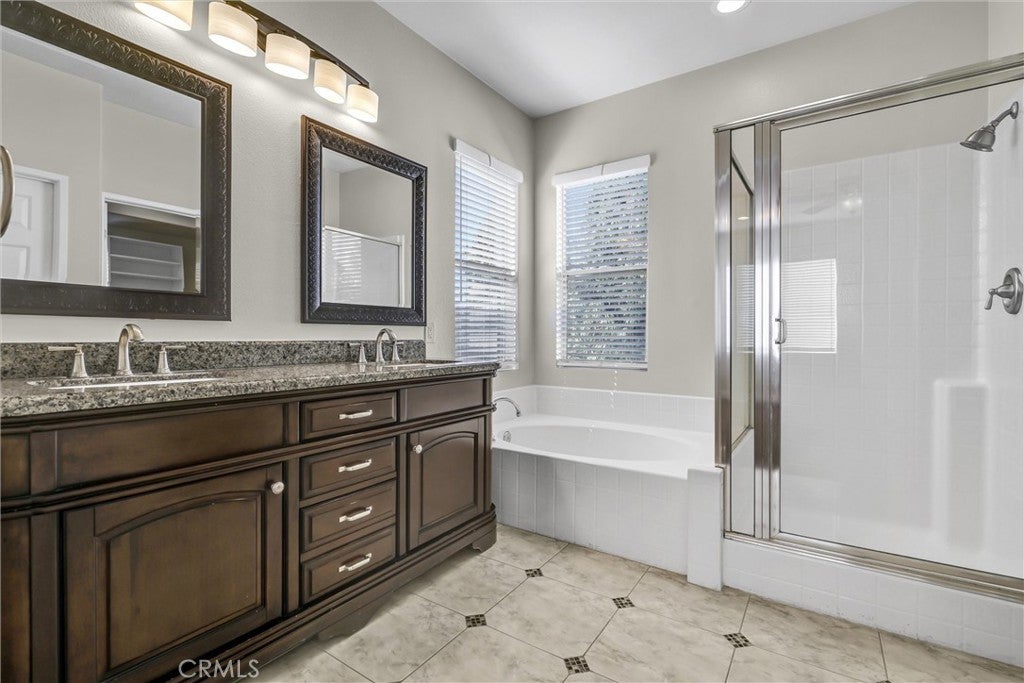 Welcome home to this beautifully appointed residence with exceptional curb appeal. A charming arbor entry and lush landscaping create a warm first impression, complemented by an extra-long driveway for added convenience. Inside, you’ll find a light-filled, open floorplan designed for comfortable living and effortless entertaining. Expansive windows invite in natural light, while the spacious kitchen serves as the heart of the home—featuring a large island, stone countertops, under-mount sink, and sleek stainless steel appliances. The serene primary suite offers a private retreat, complete with a spa-inspired bathroom showcasing a luxurious oval soaking tub, separate walk-in shower, dual sinks with granite counters, and a generous walk-in closet. Both bathrooms are thoughtfully finished with granite countertops and dual vanities. Additional highlights include ceiling fans, recessed lighting, stylish window coverings throughout, and a convenient upstairs laundry room. Enjoy low-maintenance living with a beautifully kept front yard and a spacious backyard perfect for summer barbecues and gatherings with friends. Ideally situated in the desirable gated community of Canterbury, residents enjoy access to an association pool and spa, plus a community park just a short stroll away. Located less than two miles from Don Juan Avila Middle School and assigned to highly rated schools, including Canyon Vista Elementary School—a distinguished California Blue Ribbon School—this home offers both comfort and convenience. Close to shopping, dining, and entertainment, this inviting home truly has it all.
