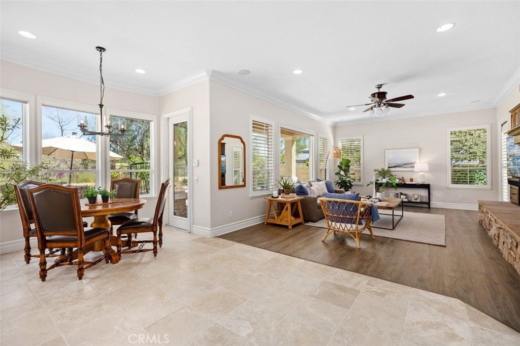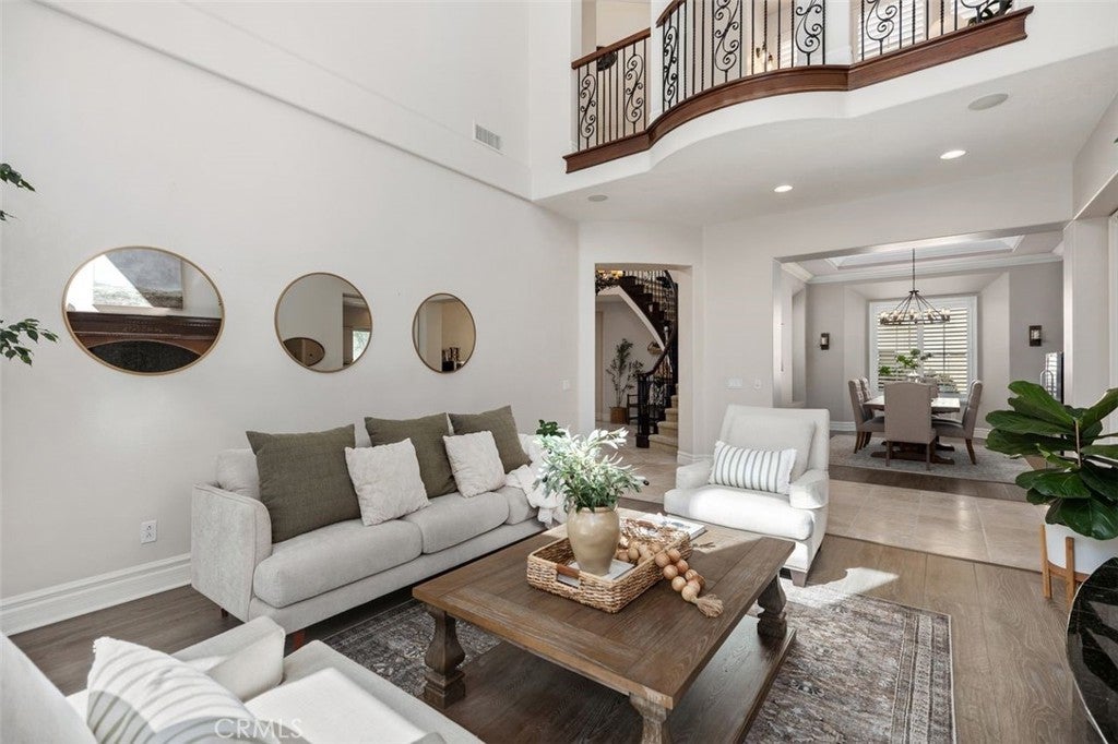 Introducing 24 Water Lily Way, an extraordinary 4 bedroom, 5 bath, 2 office estate in Southern Hills Encore within the prestigious guard-gated community of Coto de Caza. Golf course adjacent this residence embodies the elevated lifestyle of one of Orange County’s most coveted enclaves. A private courtyard and custom arched glass entry set the tone for the grandeur within - soaring ceilings, a sweeping circular staircase, timeless travertine, luxury vinyl, crown molding, cased windows and gorgeous shutters. Owned solar, PEX repiped, a new downstairs AC unit and newer water heater provide modern peace of mind behind the home’s refined elegance. The formal dining room adorned with a striking coffered ceiling crowns cherished celebrations, while the formal living room showcases a majestic fireplace, lofty double-height ceiling and opens to a private courtyard. At the heart of the home, the expansive family room with warm wood built-ins and fireplace opens to a sunlit breakfast nook and chef’s kitchen —all framed with windows capturing backyard and championship golf course views. Here, entertaining becomes an art form. Set against the exclusive South Course—an 18-hole masterpiece designed by Robert Trent Jones Jr.—the backyard is your private resort: in-ground spa, tranquil water features, built-in bar with bbq, sink & cooler, custom wood burning fireplace and multiple hosting areas ready for unforgettable gatherings. Designed for both grand entertaining and life’s evolving chapters, the floorplan offers exceptional versatility with a main-level bedroom including ensuite remodeled bath. A richly appointed office completes the downstairs. Upstairs, the home unfolds into two private wings connected by a dramatic catwalk. The primary suite, privately positioned in its own east wing, offers breathtaking views, a fireplace retreat, remodeled spa-inspired bath with soaking tub, oversized shower, dual walk-in closets and a view balcony. The west wing features a built-in office and two additional bedrooms with ensuite full baths, one with a covered balcony. The epoxy-finished three-car garage with built-in racks & cabinetry adds polished functionality. Moments from trails, parks, equestrian facilities and the Coto de Caza Golf & Racquet Club, this grand estate is more than a home—it is a legacy property designed for elevated everyday living, inspired entertaining and a lifetime of beautiful memories. Professional videography coming soon.