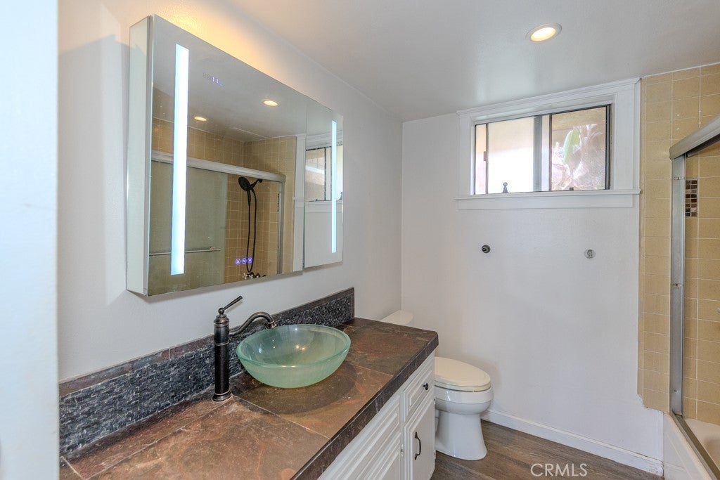 Tucked into the heart of Bluff Heights, this oversized 1 bedroom, 1½ bath condo offers the kind of space and location that’s hard to find along the coast. Directly across the street from Bixby Park, your front yard becomes one of Long Beach’s favorite gathering spots — farmers markets, yoga in the grass, ocean breezes, and sunset walks are all right there. And when you’re ready for the sand, the beach is just three short blocks down the street. Inside, the home feels open and easygoing with a noticeably larger footprint than most one-bedroom condos in the area. The spacious living and dining areas flow effortlessly, making it ideal for relaxing, entertaining, or creating a dedicated work-from-home setup. The kitchen has been tastefully updated with granite countertops, tile backsplash, and recessed lighting, offering plenty of prep and storage space. LVT flooring runs throughout the entire home, giving it a clean, modern look while keeping maintenance simple. Crown molding adds architectural character, while upgraded base molding provides a refined finishing touch. An updated electrical panel brings added peace of mind. The generously sized bedroom offers room to breathe, and the rare 1½ bath layout makes hosting guests easy. An AC/heat wall unit keeps the interior climate just right year-round. This is easy coastal living in one of Long Beach’s most loved neighborhoods — close to the park, close to the ocean, and close to everything that makes Bluff Heights special.