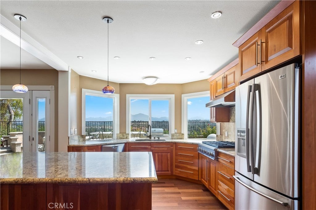 Be the first in line to view this stunning city view home located on a quiet cul-de-sac in the beautiful Kite Hill community in Laguna Niguel! Enter the double doorway and be drawn in by the rich, elegant appointments. Your experience begins with bold Brazilian Cherry hardwood flooring in every room. You'll enjoy the convenience of one bedroom/full bath combo on the first floor. The expansive master suite facing city views can accommodate a king-sized bed plus your choice of accompanying furnishings. In addition to the two secondary bedrooms upstairs, an over-sized bonus room equipped with a queen size murphy bed offers the flexibility of using it as a guest bedroom, entertainment room or a home office. Expansive living room features soaring ceiling with skylights and recessed lighting. Formal dining room features direct city and mountain view. The kitchen is a cook's dream: endless cabinetry and drawer space, six-burner cooktop, double oven, extra-deep counters and a large island for food preparation. While the home's interior is perfect for relaxing, you'll be instantly drawn to the spectacular views when you step outside to the backyard. It's a perfect place for morning meditation or evening gathering with family and friends. Start the grill on the built-in gas BBQ and enjoy outdoor dining experience almost all year long, the one thing you don’t want to miss in Southern California. This home provides easy access to schools and freeways. Enjoy all the wonderful amenities offered by the Kit Hill community: Various trails directly leading to the nearby ocean, parks by the lake, a community pool, spa, clubhouse, tennis court and sand volleyball court.