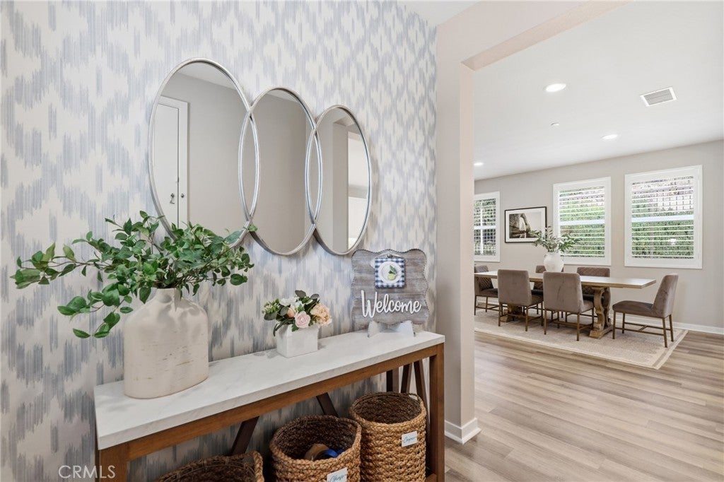 You’ll feel right at home the moment you step inside this move-in ready Plan 5 in Reverie, thoughtfully designed to bring people together while still offering peaceful spaces for privacy. The first floor welcomes you with a true fifth bedroom guest en-suite, complete with a cozy sitting area and direct access to the backyard—perfect for visiting guests, extended family, or a private home office. The main living area flows effortlessly from the living room to the dining space and into the expansive kitchen, where a huge center island naturally becomes the hub for gatherings and everyday living. Convenience is built in with a downstairs laundry room and powder room. Step outside to a wrap-around private backyard that backs to a landscaped slope, offering additional peace and privacy. The outdoor space features low-maintenance turf, creating the perfect place to relax, entertain, and enjoy Southern California living. Upstairs, the home continues to impress with a spacious primary suite complete with a walk-in closet and well-appointed bathroom, along with a junior suite featuring its own en-suite bathroom. Two additional generously sized secondary bedrooms provide flexibility for family, guests, or workspace needs. Additional highlights include a two-car garage with epoxy flooring, overhead storage racks, and a full driveway, a tankless water heater, and a solar system designed to help keep electricity bills low. Located in the amenity-rich community of Rancho Mission Viejo, residents enjoy access to an incredible array of resort-style amenities, including pools, parks, trails, fitness centers, community farms, and social events. The home is also conveniently close to shopping, dining, top-rated schools, and commuter routes, with easy access to the 241 Toll Road and 73 Toll Road, making travel throughout Orange County simple and convenient. This is a home you won’t want to miss.