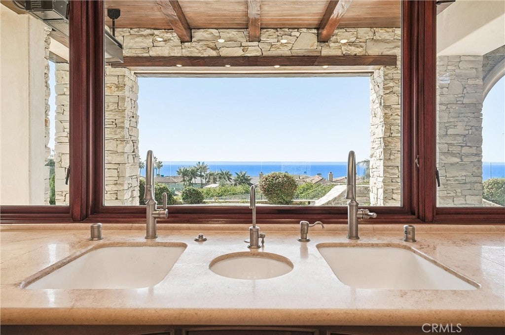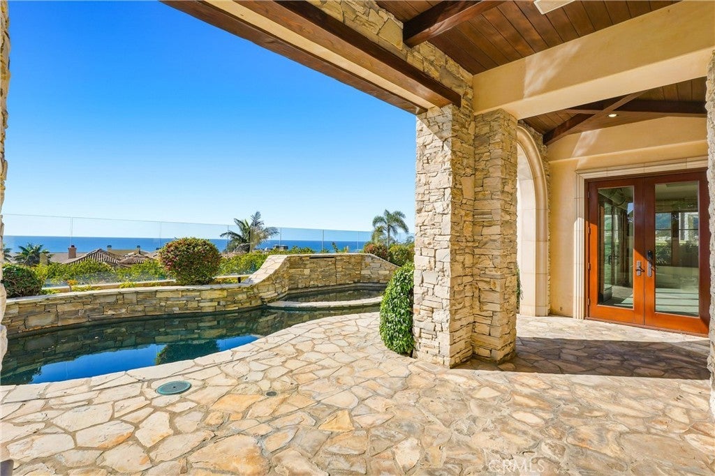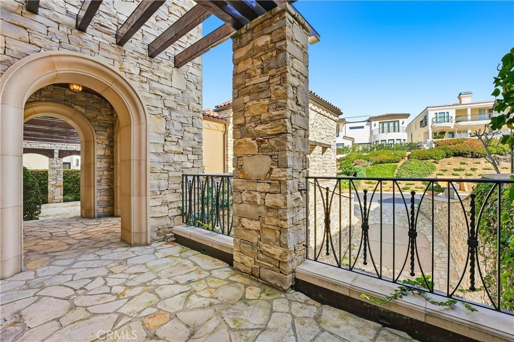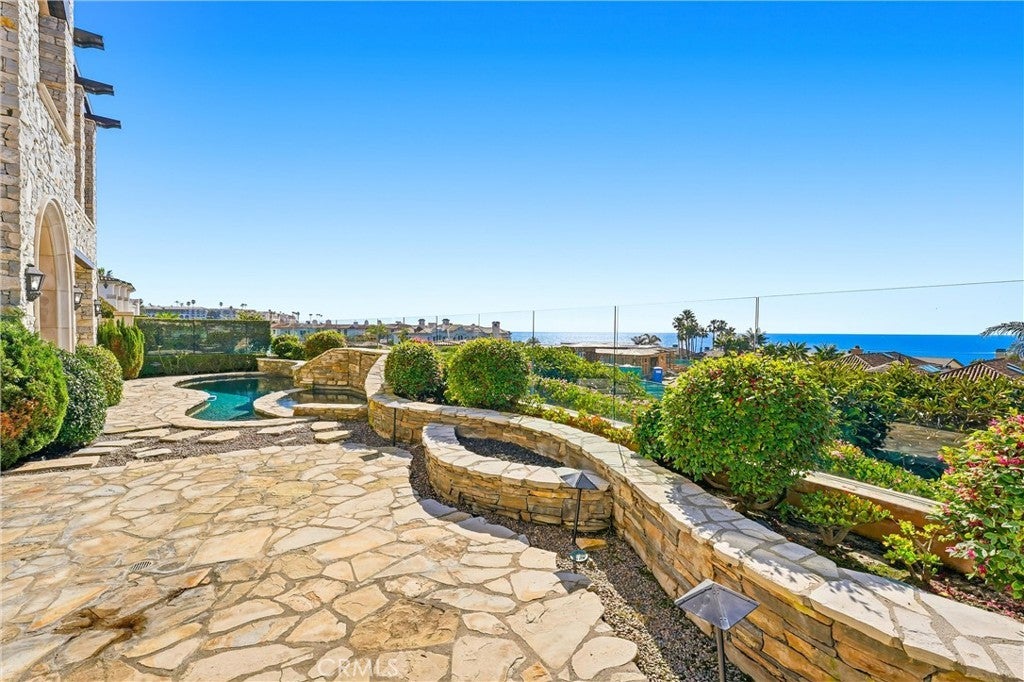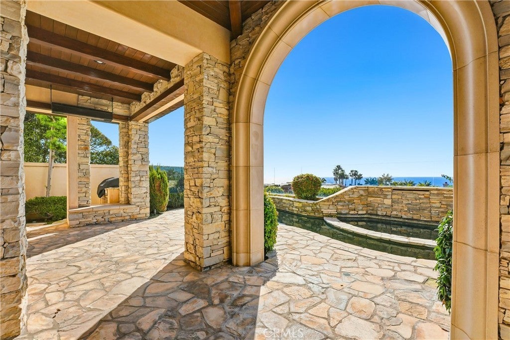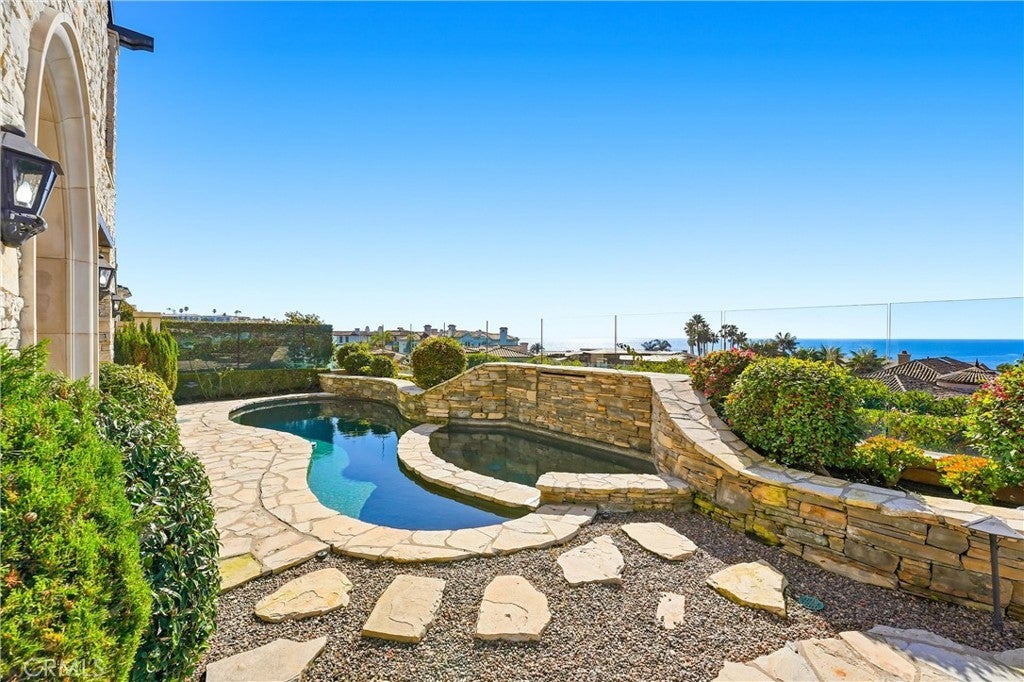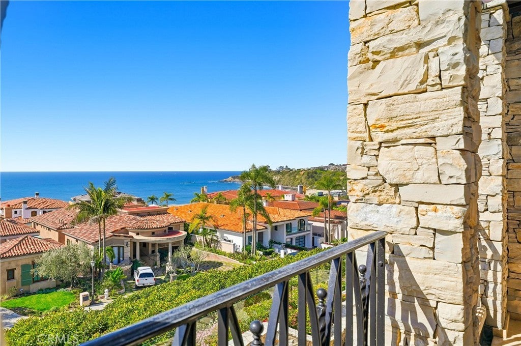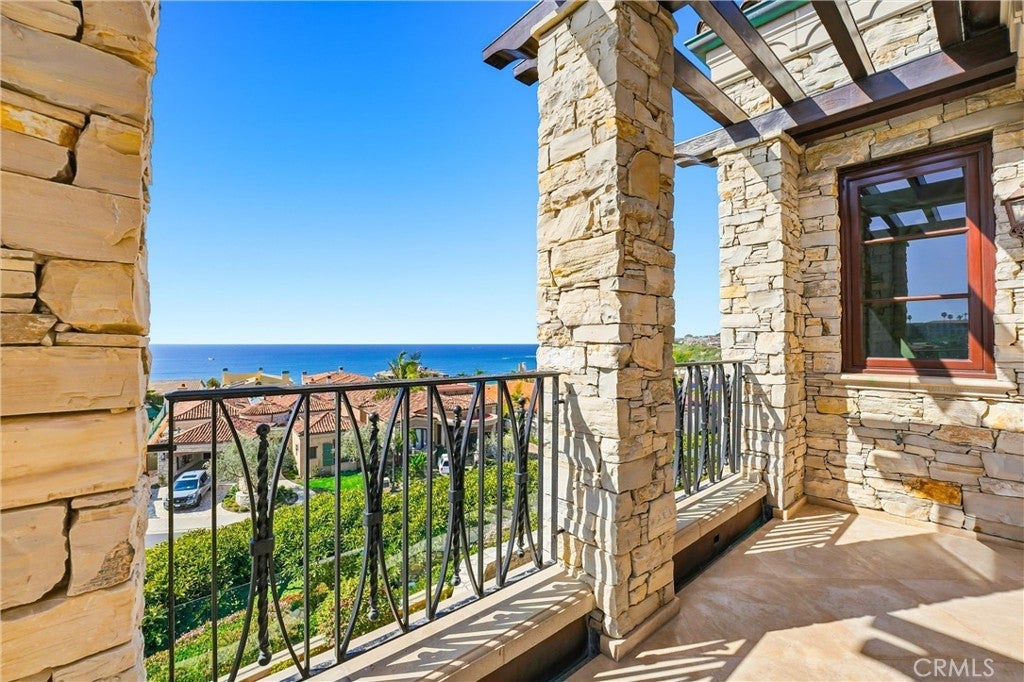 This Italian-inspired custom villa is in the prestigious guard-gated community of Ritz Cove in Monarch Beach, California. It is situated on a quiet cul-de-sac street and is neighboring the Ritz-Carlton and Waldorf Astoria resorts. This estate includes 4 spacious en-suite bedrooms and a detached private casita, 6 bathrooms an oversized subterranean garage with a separate storage/work area. The main floor Features a formal living with a fireplace, dining room and a large chef’s kitchen with high-end appliances, a walk-in pantry, and an eat-at island. The kitchen flows into an oversized family room with built-in entertainment, fireplace and access to the resort style backyard designed for entertaining with a pool, spa, built-in BBQ, all to enjoy the ocean backdrop and stunning Catalina island and sunset views. The Upper Level includes a large primary suite with a fireplace, oversized dressing room stye closet with custom built cabinets, the two secondary en-suite bedrooms feature walk-in closets, all of the bedrooms have balconies. This level also houses a built-out office and a secondary entertainment area. The subterranean level is dedicated to leisure, featuring a custom home theater with oversized recliner seating, a flex room, ideal for a gym or yoga area, and an entertainment room with a wet-bar and wine fridge. The front courtyard features a majestic stone-faced fireplace. Ritz Cove is a private gated community that also includes a private entrance to walking and bicycle paths leading directly to Salt Creek Beach. It is minutes away from Dana Point Harbor and the upscale shops and dining of the Lantern District.